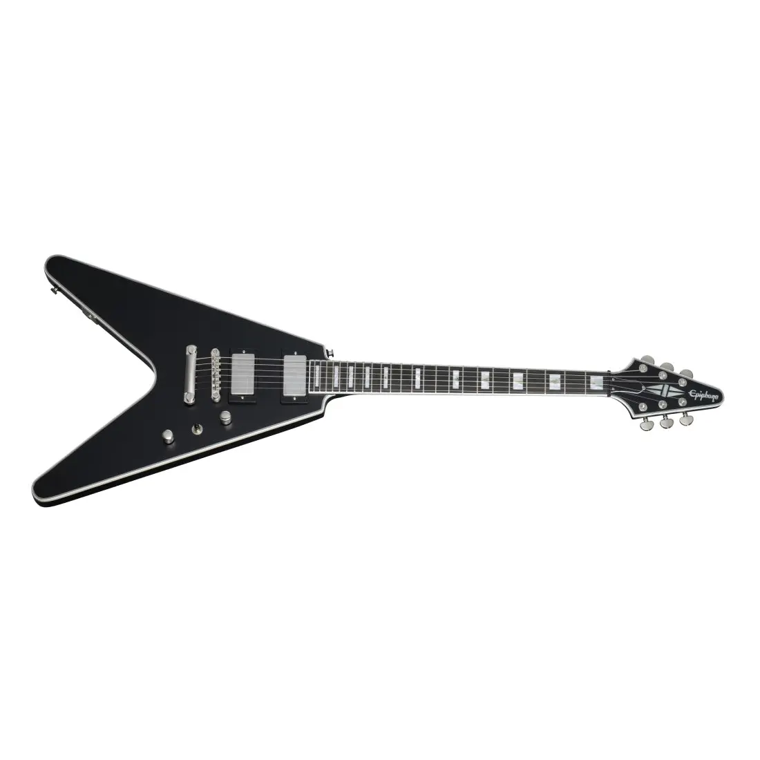The Flying V™ Propehcy also includes Grover® locking Rotomatic® tuners, Epiphone's LockTone™ Tune-O-Matic™ bridge and tailpiece for added sustain, a Graph Tech® NuBone® nut that boosts harmonic content and increases tuning stability, custom binding, ebony fretboard, jumbo frets, PosiLok strap buttons, and an asymmetrical SlimTaper™ neck for comfort and speed. A premium gigbag is also included.