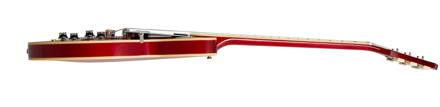 The ES-335 is Epiphone's version of the historic ES-335 that has been wowing guitar players all over the world for over six decades. From its inaugural appearance in 1958, the Gibson™ ES-335 set an unmatched standard. This Epiphone ES-335 is no exception. It is simply one of the best deals today for guitar players who want the classic sound of an ES-335 at an accessible price. The ES-335 is crafted with a layered maple top, back, and sides coupled with a solid maple tone block to create the amazing sustain, warmth, and resonant tone that players crave in a semi-hollow instrument. Epiphone's Alnico Classic PRO™ Humbuckers deliver a wide range of vintage sounds while the rounded C neck profile is extremely comfortable and easy to play, and the headstock features the 60s style Kalamazoo shape. Details • Finishes Available: Cherry, Vintage Sunburst • Body: Layered Maple Back & Sides, Layered Maple Top • Binding: Single ply cream - top, back and fretboard • Neck: Mahogany • Neck Profile: Rounded C • Nut width: 1.693" / 43mm • Fingerboard: Indian Laurel • Scale length: 24.724" / 628mm • Number of frets: 22 • Nut: Graph Tech® NuBone® • Inlay: Dot • Bridge: LockTone™ Tune-O-Matic™ • Tailpiece: LockTone™ Stop Bar • Knobs: Black Top Hat knobs with metal inserts • Tuners: Epiphone Deluxe • Plating: Nickel • Neck pickup: Alnico Classic PRO™ • Bridge pickup: Alnico Classic PRO™ • Controls: 2 Volume, 2 Tone, CTS® potentiometers