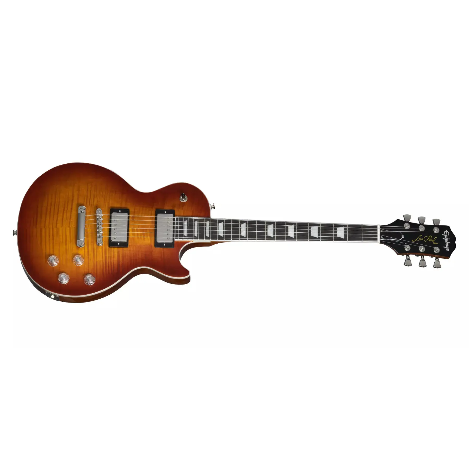 Epiphone's new Modern Figured from the Inspired by Gibson™ Collection brings a new look and sound to the world's greatest electric guitar. Featuring a weight relief mahogany body with a beautiful figured top, ProBucker™ pickups with coil-splitting, phase switching, and a treble bleed circuit. Plus, Grover® Locking Rotomatic® tuners with tulip buttons and an 18:1 ratio, GraphTech® nut, PosiLok strap buttons, and an ebony fingerboard. A premium gig bag is included.
