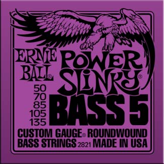 Ernie Ball Power Slinky 5 String Bass Sets are round-wound for maximum clarity and serious punch.
