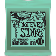 **Optimal For Detuning** Ernie Ball Not Even Slinky Electric Strings are perfect for those who like to detune their instrument to lower tuning combinations. Metal fans worldwide have gravitated towards the Not Even Slinky set to give their guitar the optimal gauge combination for Drop D & Drop C tuning. These strings are precision manufactured to the highest standards and most exacting specifications to ensure consistency, optimum performance, and long life. Not Even Slinky wound strings are made from nickel plated steel wire wrapped around a hex shaped steel core wire. The plain strings are made of specially tempered tin plated high carbon steel; producing a well balanced tone for your guitar.