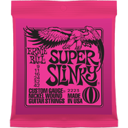 Ernie Ball Super Slinky Electric Strings are played by Jimmy Page, Jeff Beck, and Angus Young. These strings are precision manufactured to the highest standards and most exacting specifications to ensure consistency, optimum performance, and long life. Super Slinky wound strings are made from nickel plated steel wire wrapped around a hex shaped steel core wire. The plain strings are made of specially tempered tin plated high carbon steel; producing a well balanced tone for your guitar.