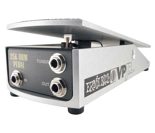 The Ernie Ball VP Junior 25K Active Volume Pedal has a rugged, compact design that provides more floor space and features a 25kOhm pot optimized for the hot signal of active instrument pickups. The pedal's tuner output allows silent tuning in the heel-down pedal position.