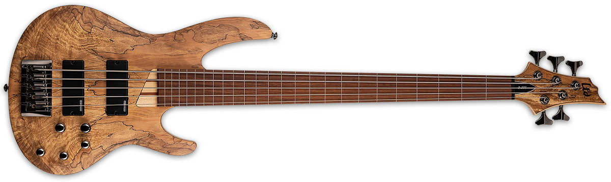 With its unique coloration and grain pattern highlights, spalted maple is a great look for a bass that stands out from the crowd. The B-205SM FL is an excellent choice in an affordable fretless 5-string bass that includes an ash body with a spalted maple top in Natural Satin finish, along with an extra thin U-shaped 5-piece maple/jatoba neck for excellent playing feel, and 24 clearly marked fret indicators to quickly hit the pitch you want. You also get passive ESP Designed SB-5 pickups, along with an active ABQ-3 EQ, and good-looking black nickel hardware. Available in Natural Satin finish.