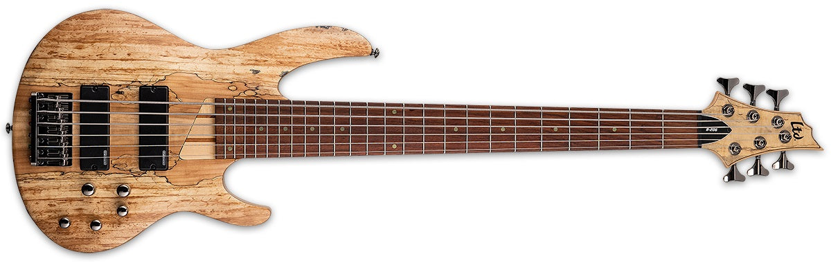 With its unique coloration and grain pattern highlights, spalted maple is a great look for a bass that stands out from the crowd. The B-206SM is an affordable yet high quality 6-string bass that offers an ash body with a spalted maple top in Natural Satin finish, along with a thin U-shaped 5-piece maple/jatoba neck for excellent playing feel. You also get passive ESP Designed SB-6 pickups, along with an active ABQ-3 3-band EQ, and good-looking black nickel hardware. Available in Natural Satin finish. Also available in a left-handed version, and in See Thru Black Satin finish.