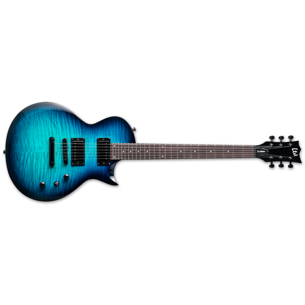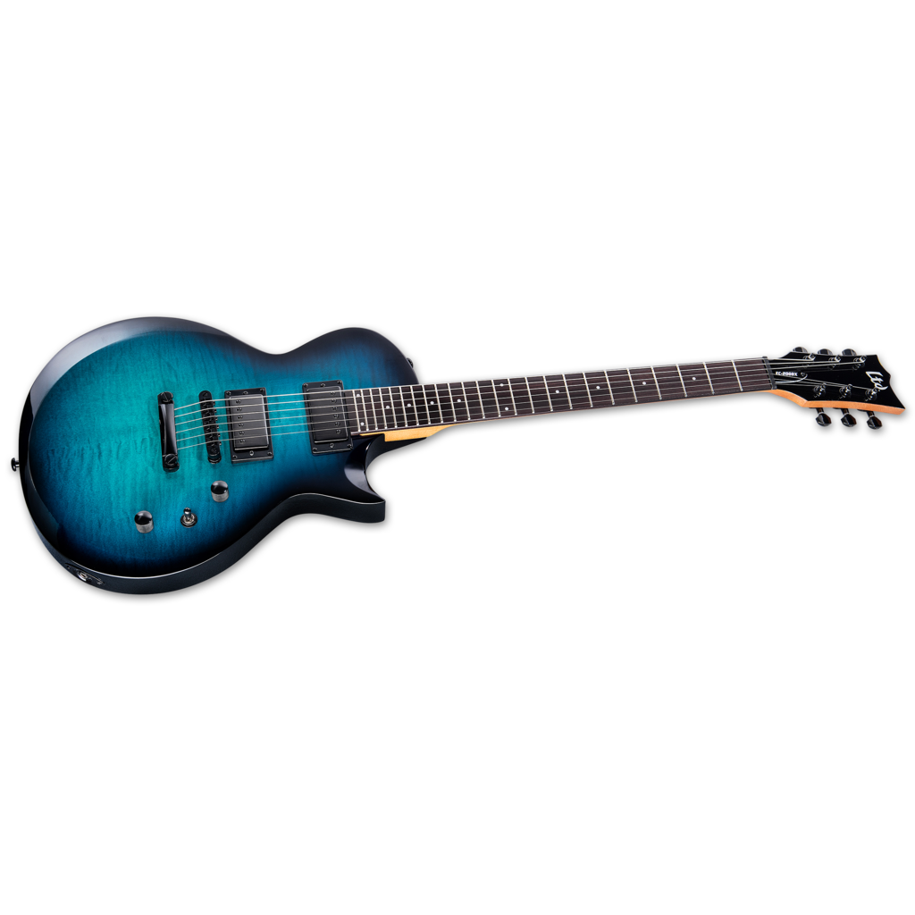 LTD’s DX range allows for musicians to get access to a high-quality guitar at a price far less than its impressive features would imply. The EC-200DX offers a flat-top single-cutaway Eclipse body with a bevelled edge. It’s built with bolt-on construction at 24.75” scale, featuring a very comfortable poplar body with a flamed maple top, and a roasted maple neck with a rosewood fingerboard. This guitar includes a TOM-style bridge and tailpiece, 24 extra-jumbo frets, dot inlays, and black chrome hardware. The EC-200DX includes a set of our acclaimed ESP LH-150 humbucking pickups with matching black chrome covers in the bridge and neck positions, providing punchy, great tone for all genres of music. You also get the flexibility of single-coil tones controlled by a push-pull switch on the tone knob.