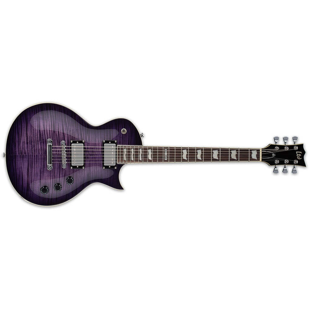 SPECIFICATIONS CONSTRUCTION Set-Neck SCALE 24.75" BODY Mahogany TOP Flamed Maple NECK 3Pc Mahogany FINGERBOARD Roasted Jatoba FINGERBOARD RADIUS 350mm FINISH See Thru Purple Sunburst NUT WIDTH 42mm NUT TYPE Molded NECK CONTOUR Thin U FRETS/TYPE 22 XJ HARDWARE COLOR Chrome STRAP BUTTON Standard TUNERS LTD BRIDGE TOM & Tailpiece NECK PU ESP Designed LH-150N BRIDGE PU ESP Designed LH-150B ELECTRONICS Passive ELECTRONICS LAYOUT Vol/Vol/Tone(P/P)/Toggle Switch