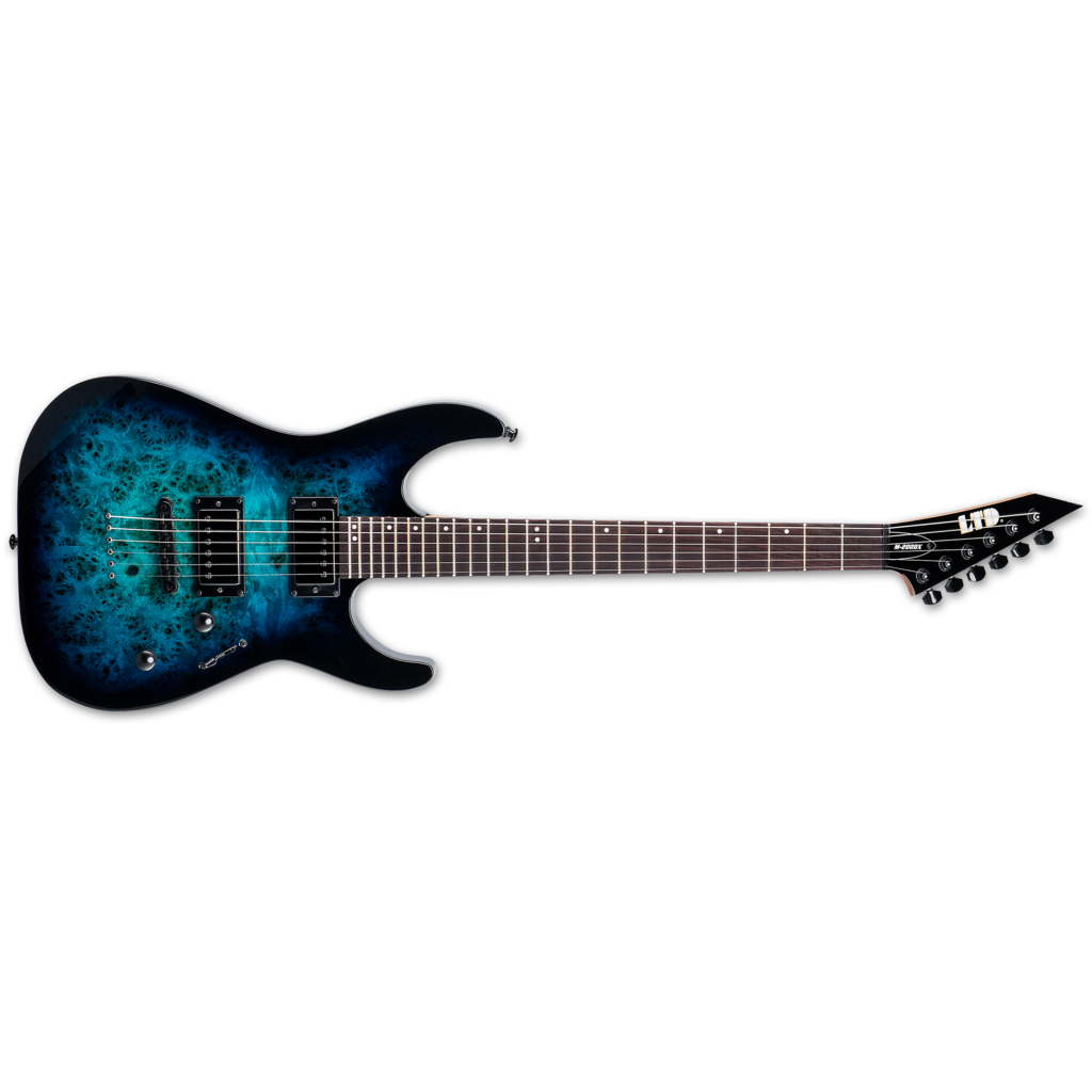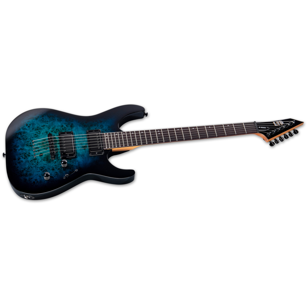 LTD’s DX range allows for musicians to get access to a high-quality guitar at a price far less than its impressive features would imply. The M-200DX offers the streamlined M shape and then adds a great-looking burled poplar top on its light, resonant poplar body. Built with bolt-on construction at 25.5” scale, the M-200DX include classy features like a roasted maple neck, rosewood fingerboard, black chrome hardware, a TOM-style bridge with string-thru-body design, full body binding, offset dot inlays, and a reverse inline headstock. The M-200DX includes a set of our acclaimed ESP LH-150 humbucking pickups with matching black chrome covers in the bridge and neck positions, providing punchy, great tone for all genres of music. You also get the flexibility of single-coil tones controlled by a push-pull switch on the tone knob.