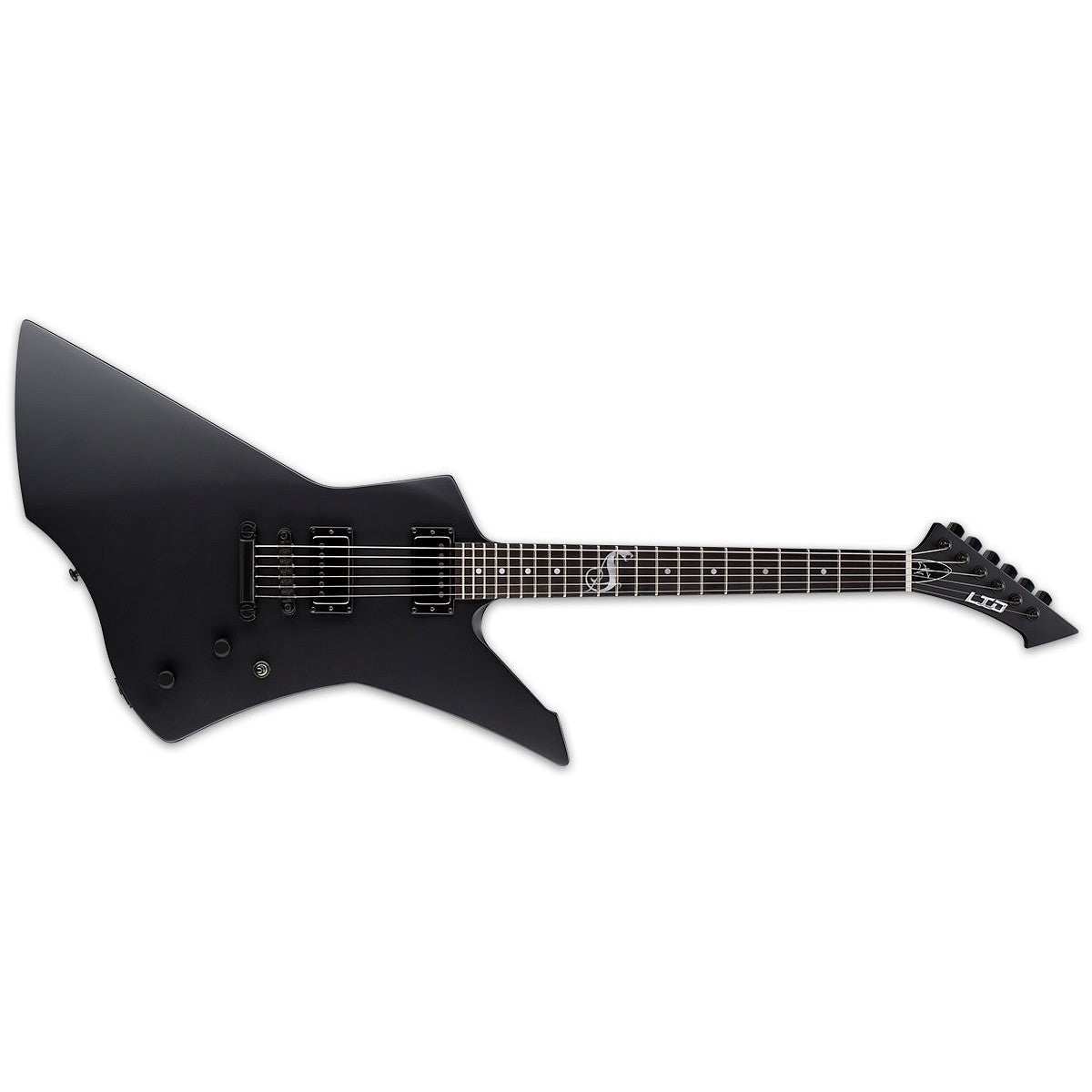 The LTD Snakebyte is a Signature Series model of James Hetfield, the frontman of Metallica and one of the world's most highly respected rhythm guitar players in any genre. The Snakebyte was created based on James' own original design. It features set-neck construction at 24.75" scale, with a mahogany body and a three-piece mahogany neck with ebony fingerboard and 22 extra-jumbo frets with a snake inlay at the 12th fret. The LTD Snakebyte is powered by James' own EMG JH SET active pickups, and includes a TonePros locking TOM bridge and tailpiece. Available in Snow White or Black Satin finishes, as well as in a lefthanded version.