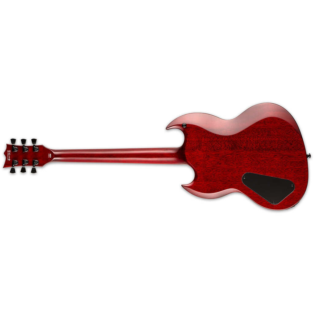 Guitars in the LTD 1000 Series are designed to offer the tone, feel, looks and quality that working professional musicians require in an instrument. With the Viper-1000, the classically diabolical offset double-horn body shape of the Viper is spiced up via mahogany body with an exceptional quilted maple top, and a three-piece mahogany neck. This LTD Deluxe Viper model also includes top-tier components like direct-mount Seymour Duncan Sentient (neck) and Pegasus (bridge) passive pickups, splittable by a push-pull control. Other high-end components include a TonePros locking TOM bridge and tailpiece, and LTD locking tuners. Available in See Thru Purple Sunburst and Tiger Eye Sunburst finishes.