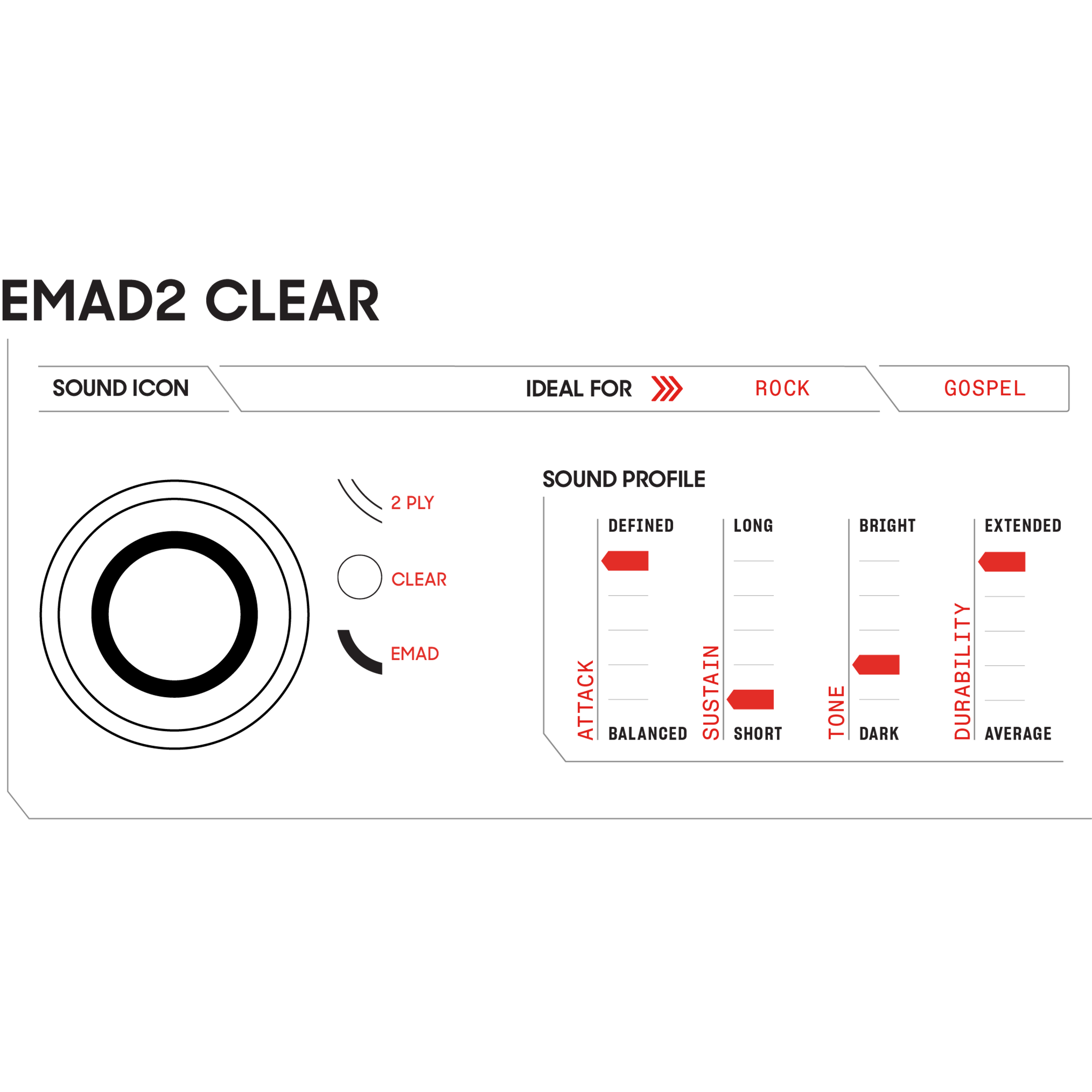 EMAD2 Clear provides the perfect blend of attack, focus, and durability, plus the option to hone your tone with EMAD. EMAD2 Clear features an outer 7-mm ply, plus an inner ply of 10-mm film, complete with EMAD foam rings to adjust the head's attack, focus, and sustain. Sonically, this bass drumhead has a very defined attack, short sustain, and moderately dark tone. This bass head also features Level 360 Technology.
