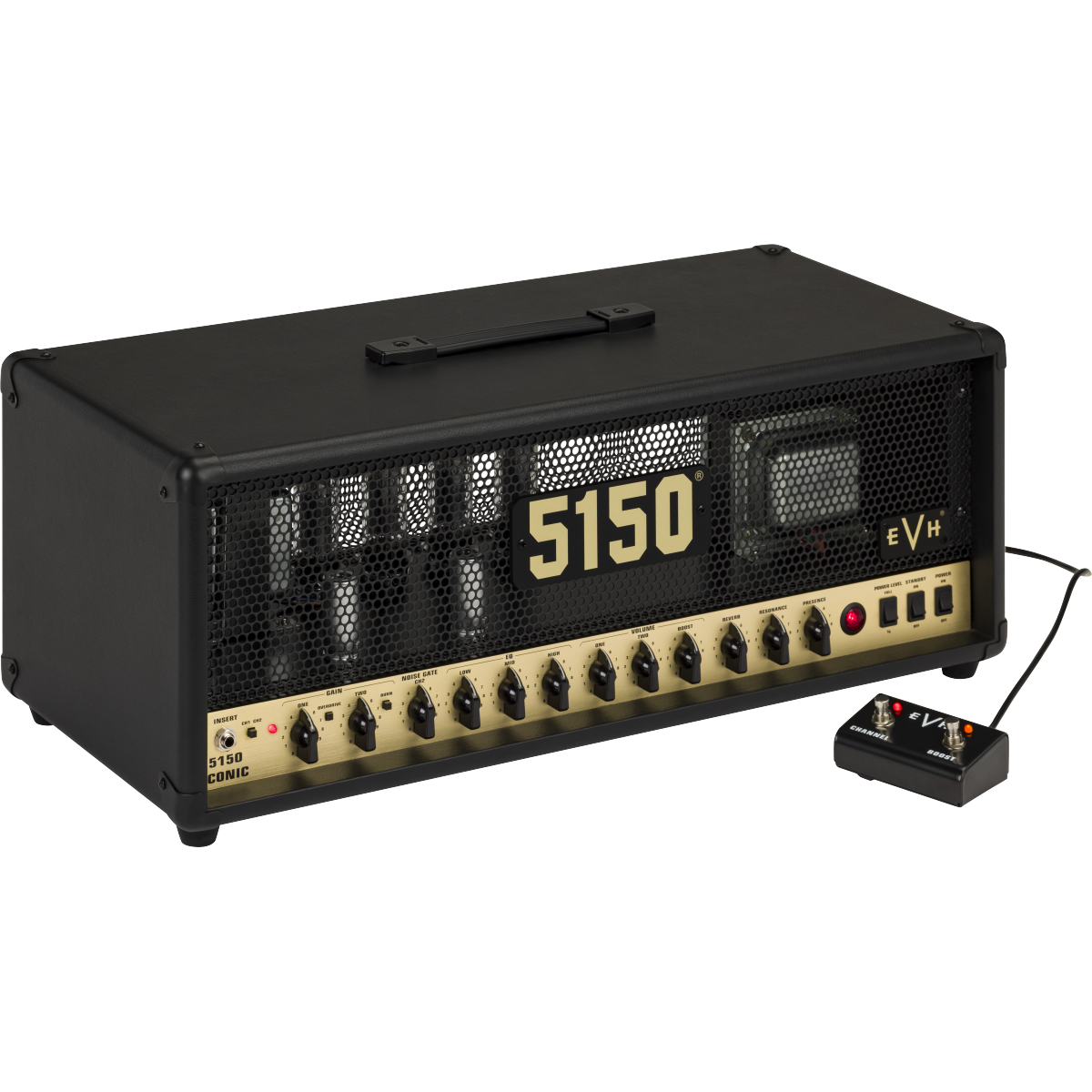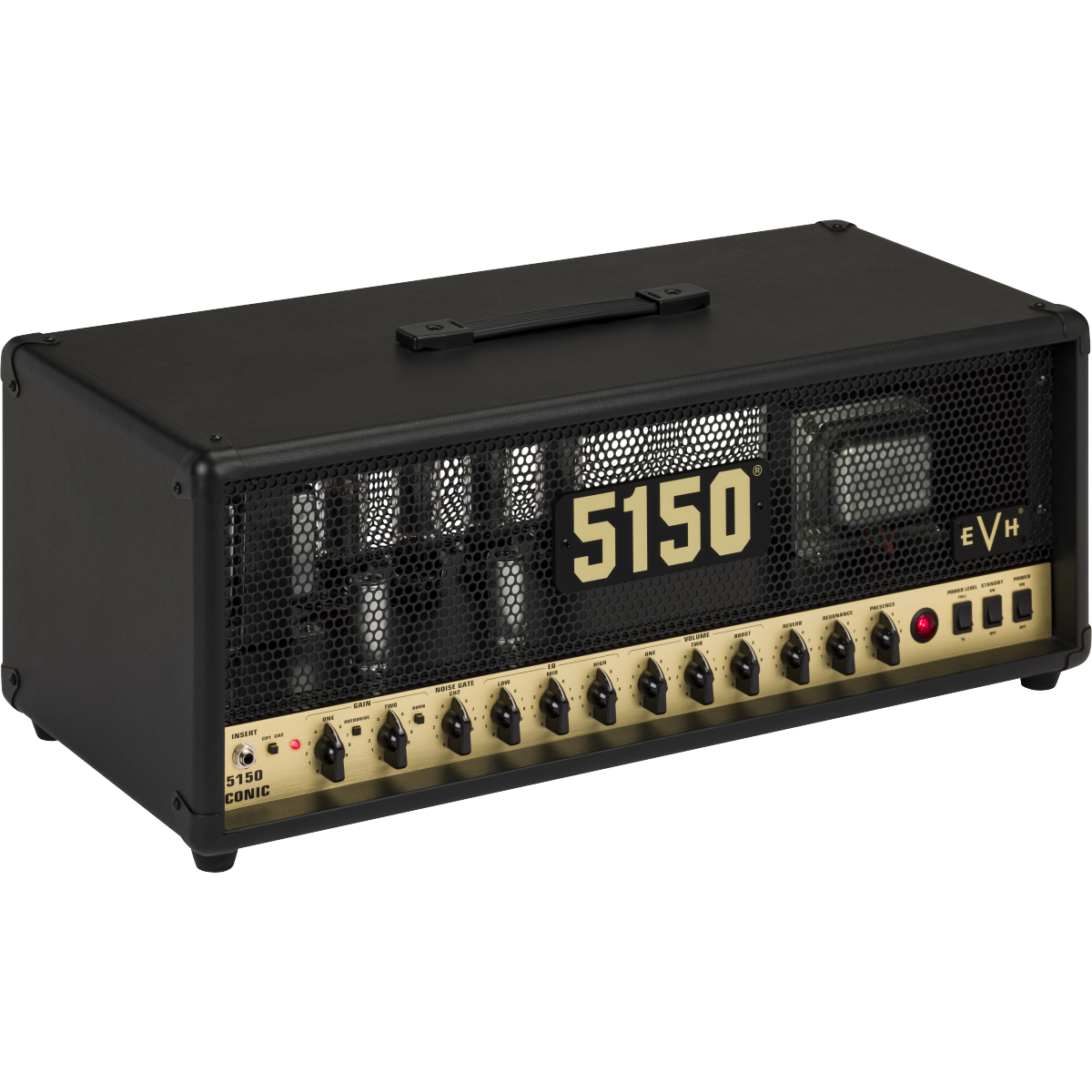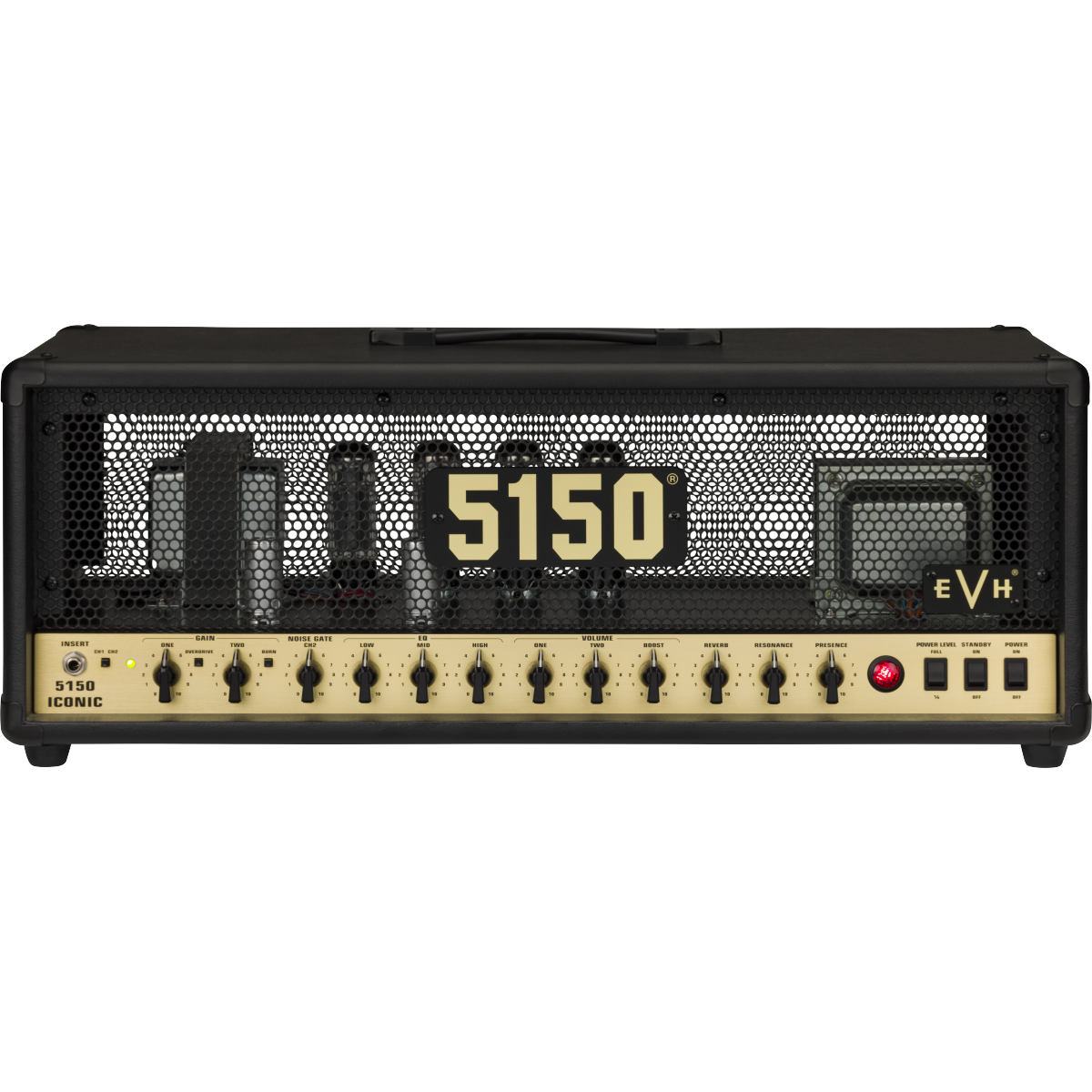 Sporting sophisticated and distinctive EVH style, the 5150 Iconic Series 80-watt head is wrapped in Black textured vinyl with a brushed gold anodized aluminum front panel and black steel grille featuring gold and black 5150 and EVH logo badges. This head is finished off with vintage-style chicken-head knobs, red LED jewel indicator and molded black plastic top handle.