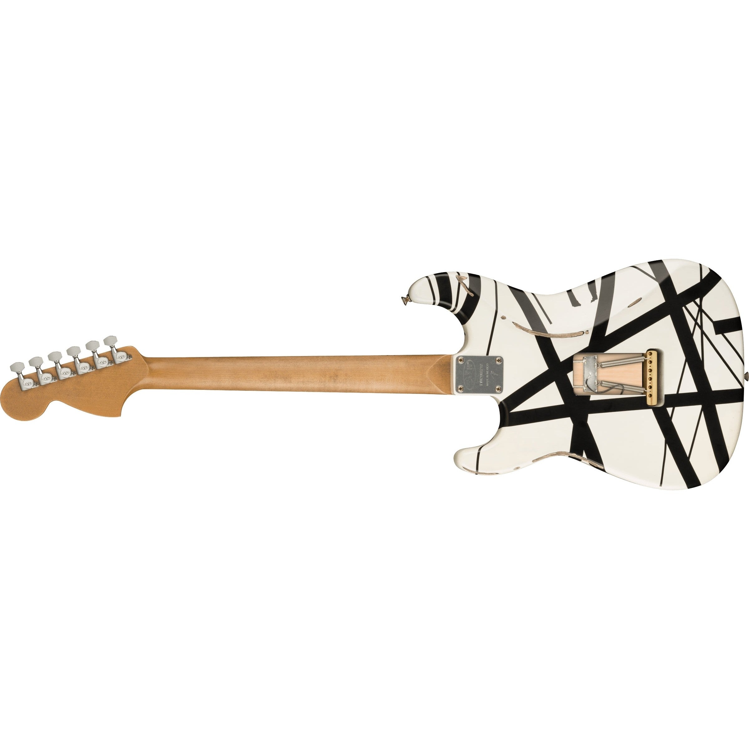 The Stratocaster®-style body sports Eddie’s famed white-and-black-striped paint job and has been paired to a quartersawn maple neck with a hand-rubbed satin urethane back finish. The 12”-16” compound radius maple fingerboard with 22 jumbo frets was designed for fast and furious playing styles with maximum comfort, while a heel-mount truss rod wheel makes for time-saving neck adjustments.
