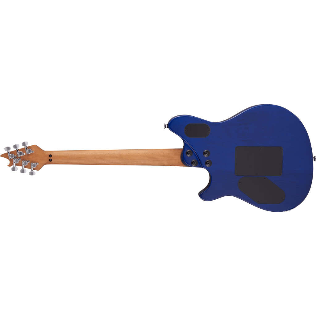 The Wolfgang Special QM features a basswood body with an arched quilt maple top and a robust graphite-reinforced bolt-on quartersawn baked maple neck. The neck is carved and rolled to Eddie Van Halen’s exacting specifications and features a hand-rubbed satin urethane finish on the back. Primed for high performance, energetic riffing and blazing leads, the 12”-16” compound radius baked maple fingerboard has 22 jumbo frets and black dot inlays. Truss rod adjustments have also never been easier thanks to a spoke wheel conveniently located at the base of the neck.