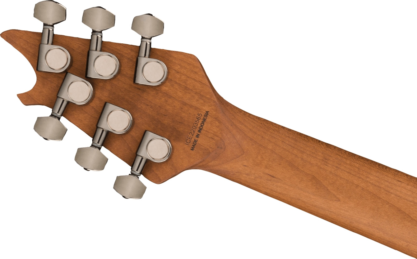 Offering many of the blazing features as its more expensive brethren, this axe features a basswood body with special “comfort cut” forearm contour for maximum playing ease, along with attractive masked-off natural body binding and an elegant quilt maple top. Its bolt-on baked maple neck with graphite-reinforcement rods holds strong against the ravages of temperature and humidity, while a conveniently located spoke wheel at the base of the neck makes for quick and painless truss rod adjustments. Designed for comfortable playability and speed, the Wolfgang WG Standard also features a smooth oiled finish on the back of the neck and a 12”-16” compound radius baked maple fingerboard with rolled edges, 22 jumbo frets and black dot inlays.