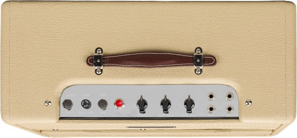 Aesthetic appointments include a blonde textured vinyl covering, wheat grille cloth and a top-mounted control panel with easy access to the highly responsive chickenhead control knobs—all housed in a durable cabinet. With timeless looks and premium vintage sound, the ’57 Custom Deluxe delivers everything a guitarist’s heart could desire. Includes a protective cover.