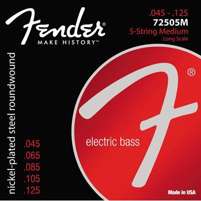Fender Super 7250-5M Nickel-Plated Steel (NPS) bass strings combine the high output and dynamic sound of steel with the smooth feel of nickel.