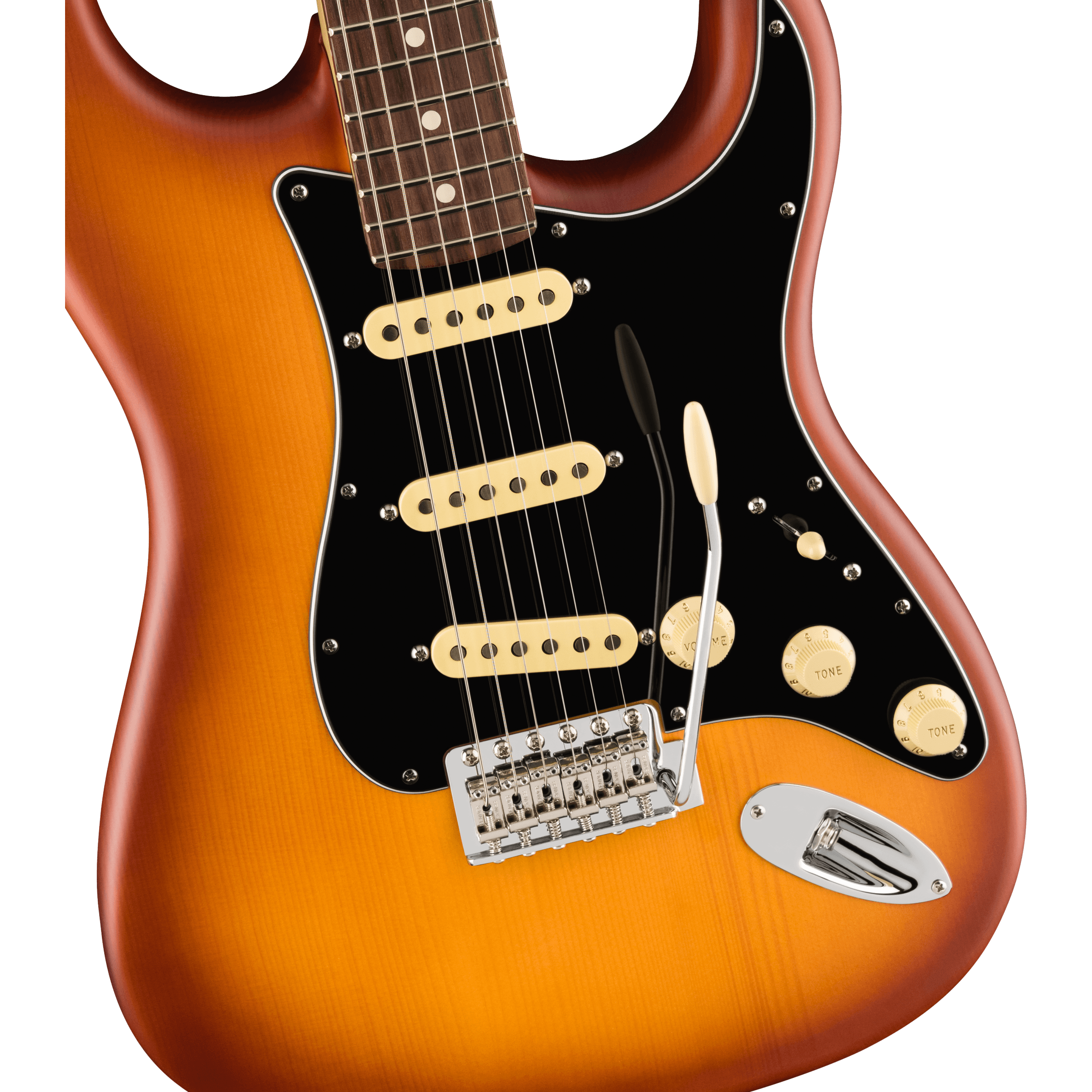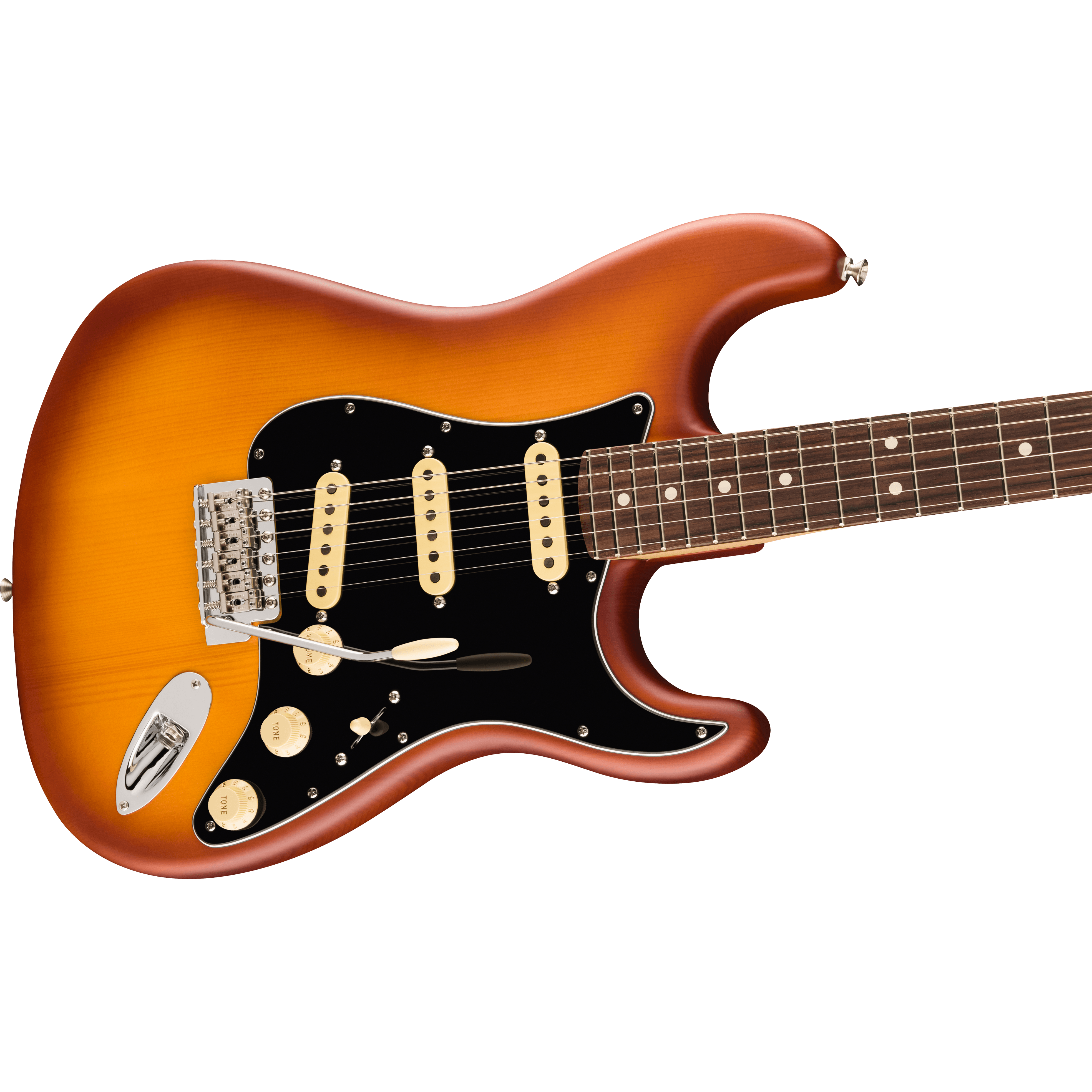 The Limited Edition American Performer Timber Stratocaster is available in three beautiful tonewood options. Choose Sassafras with a satin Mocha finish, Sugar Pine with a satin 2-Color Sunburst finish, or Spruce with a satin Honey Burst finish.