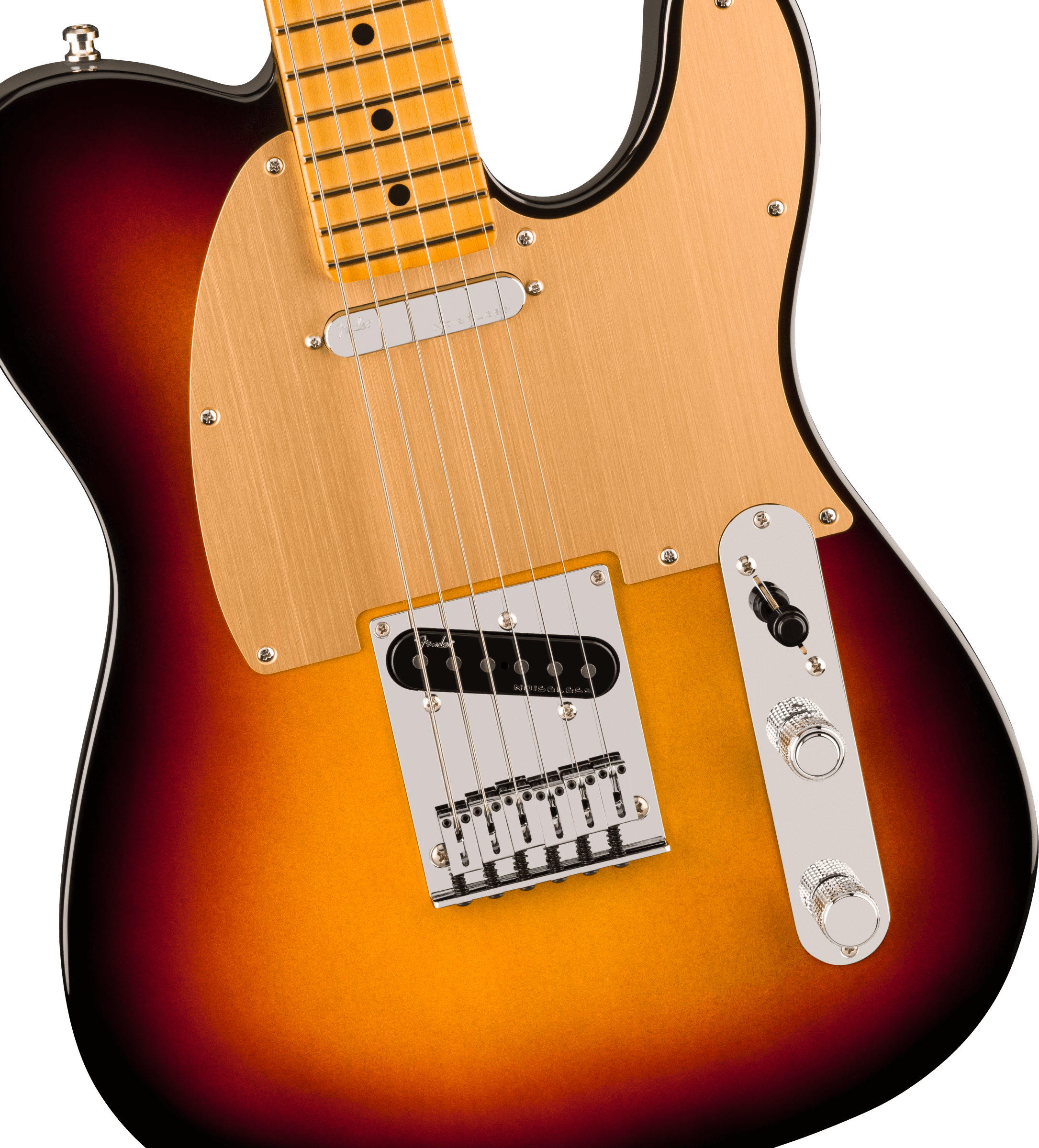 Under the hood, the Ultra II Noiseless™ Vintage Tele® pickups deliver sweet crystalline cleans, snappy twang and beefy growl, all without a hint of hum. Our patented S-1™ switch cleverly engages a series wiring option for even more tonal variety. Additional road-ready features include 6-saddle string-through-body bridge with chromed brass saddles, Deluxe locking tuners, knurled aluminum knobs and 1-ply anodized aluminum pickguard.