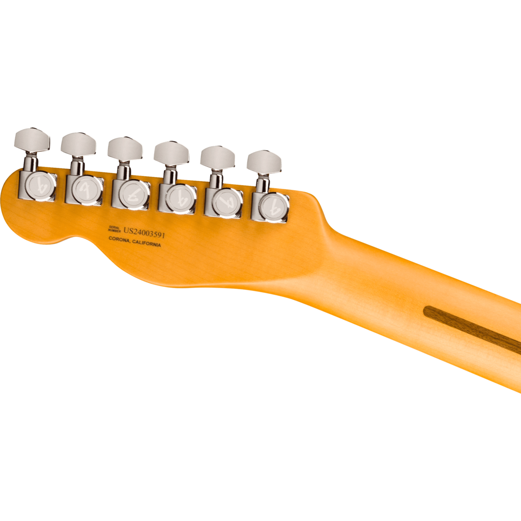 The Fender® American Ultra II Telecaster® features a select alder body with sculpted body contours. For effortless playability, the quartersawn maple neck features our Modern D profile and smooth Ultra Satin finish. Ebony or quartersawn maple 10”-14” compound radius fingerboards feature Ultra rolled edges, medium-jumbo frets, Luminlay® side dots and Graph Tech® TUSQ® nuts. The tapered neck heel and sculpted body contours allow unparalleled access to the higher register.