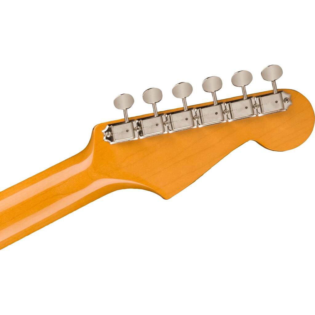 During the late ‘50s and early ‘60s, the popularity of Fender musical instruments flourished, and although the Fender assortment had expanded to include many great new instruments, the Stratocaster® reigned supreme. By 1961, the Stratocaster had taken on a more refined aesthetic, with a 3-Color Sunburst reformulated with a more vibrant red and bolder black edge, topped with a 3-ply pickguard accenting the Strat’s signature curves.