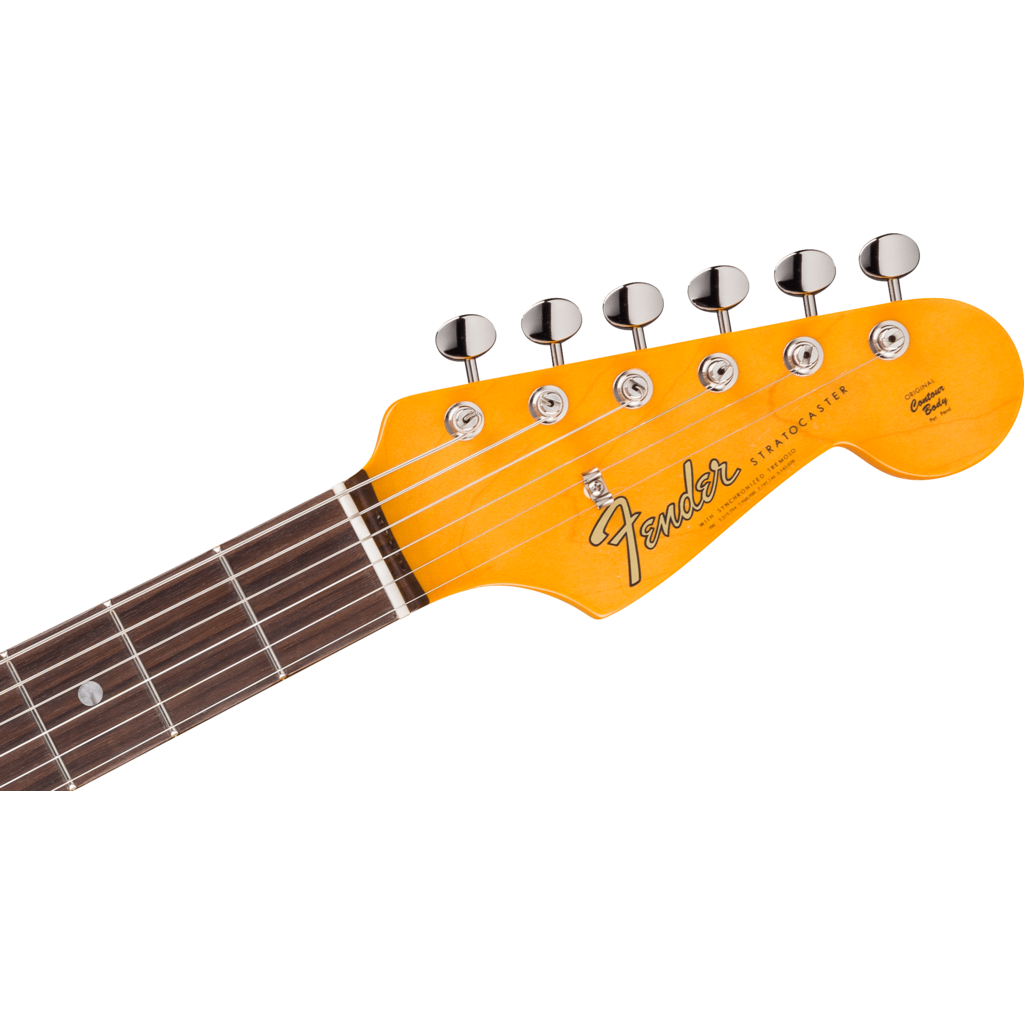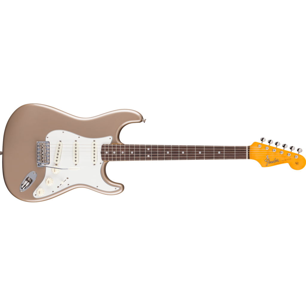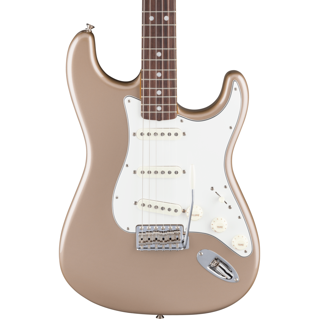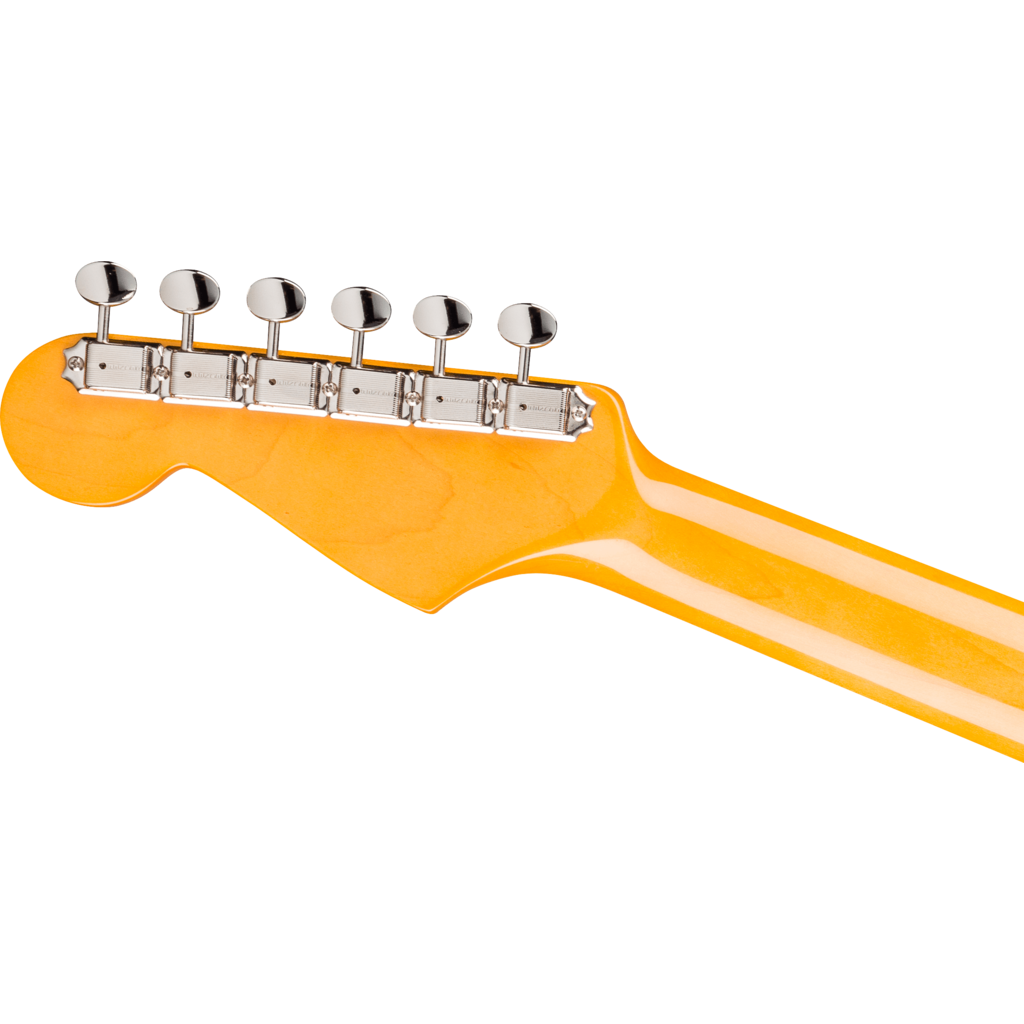 Relive the sound and spirit of 1965 with the American Vintage II 1965 Stratocaster. Smack in the middle of one of music’s most electrifying decades, the Stratocaster in 1965 was an instrument on its way to becoming rock’s greatest electric guitar. A perfect example of a Strat in a transition year, the 1965 Stratocaster® features a 1965 “C”-shaped maple neck, this time with a round-laminated rosewood fingerboard and larger pearl dot inlays. Other authentic features include an 11-hole three-ply white pickguard, the incredibly cool transition logo with larger lettering, and a set of amazing “gray bottom” Pure Vintage 1965 pickups.