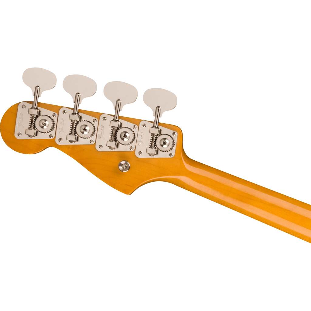 The American Vintage II 1966 Jazz Bass features a comfortable “U” shape hard rock maple neck, and it plays like a dream with a 7.25” radius round-lam rosewood fingerboard and vintage tall frets. Characteristic of production in 1966, this J-Bass® is offered with white neck binding, pearl dots, two volume controls with master tone, matching painted headstock and 4-ply tortoiseshell pickguard. The 4-saddle bridge with threaded saddles, vintage-style “lollipop” tuners and Pure Vintage ‘66 Jazz Bass pickups deliver classic thump and style.