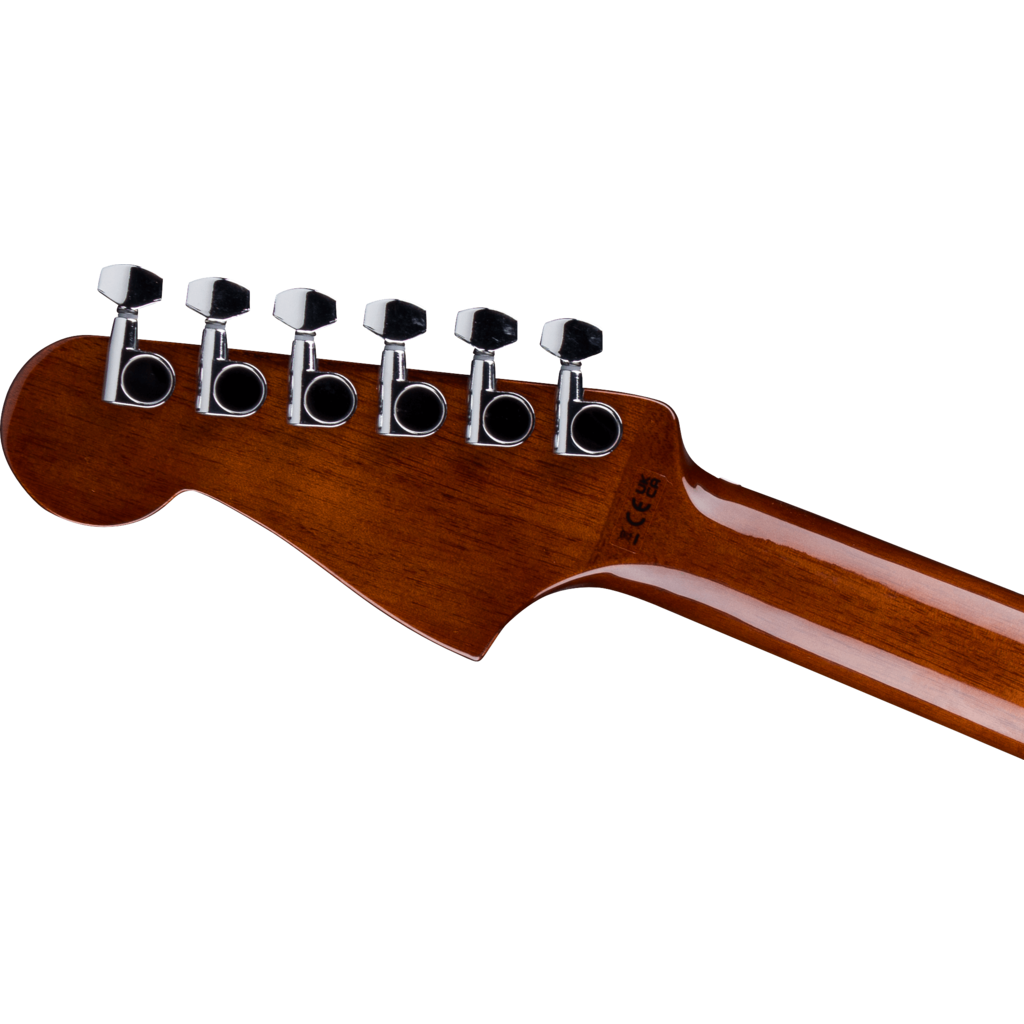 The dreadnought shape is beloved for its robust, deep tone and versatile personality, making it the go-to choice for any musical playing style from strumming to soloing. The California Standard Redondo™ CE features resilient laminate construction with a spruce top and sapele back and sides for impressive and satisfying tonal richness, while a 25 ½” scale neck with a slim “C”-shaped profile provides an inviting and effortless playing feel. The onboard Fender electronics provide high-quality output for live amplification, recording and effects, as well as a convenient onboard digital tuner. Other noteworthy details include an oiled walnut fingerboard and bridge, sealed gear tuning machines for smooth and accurate tuning action, and a sleek long-lasting gloss finish.