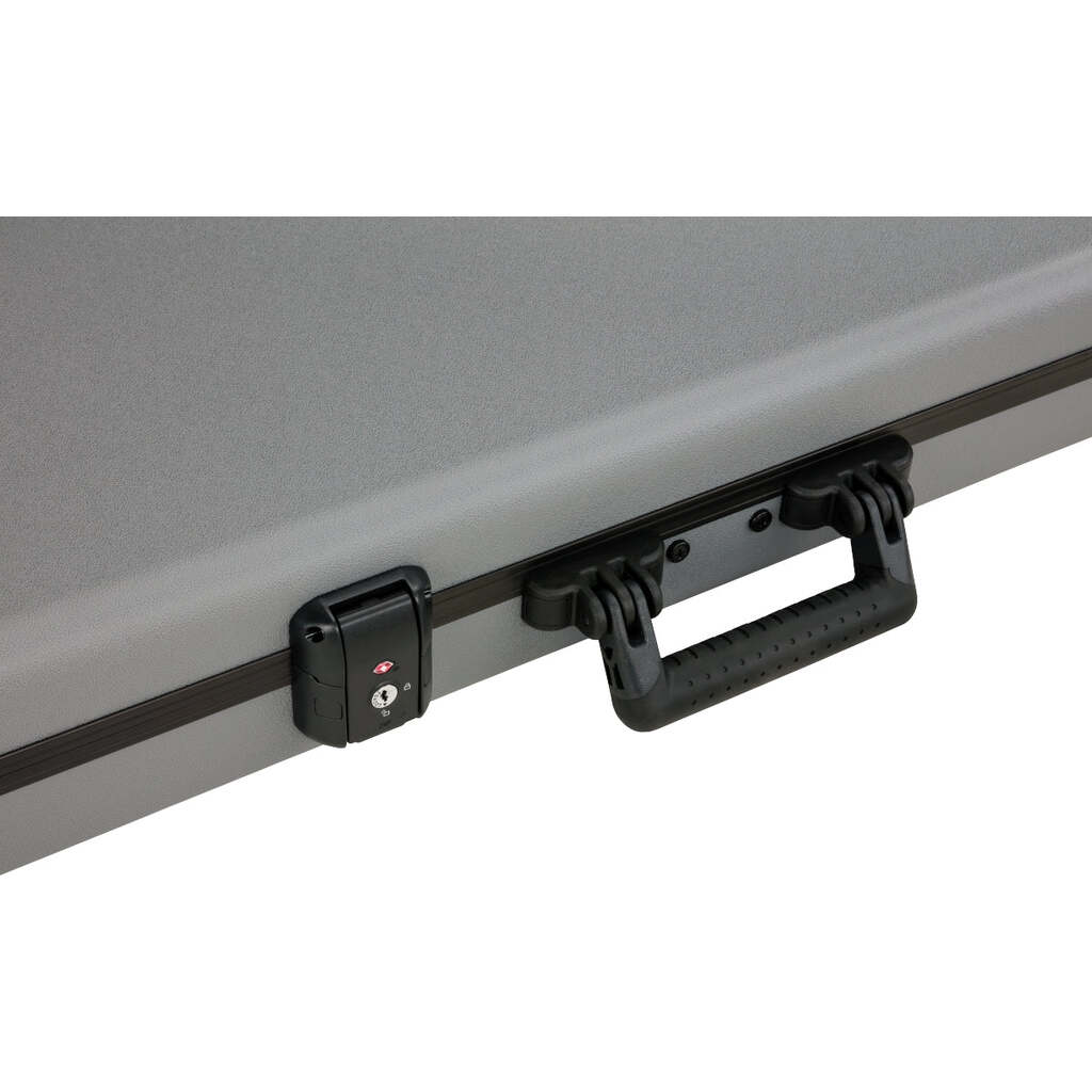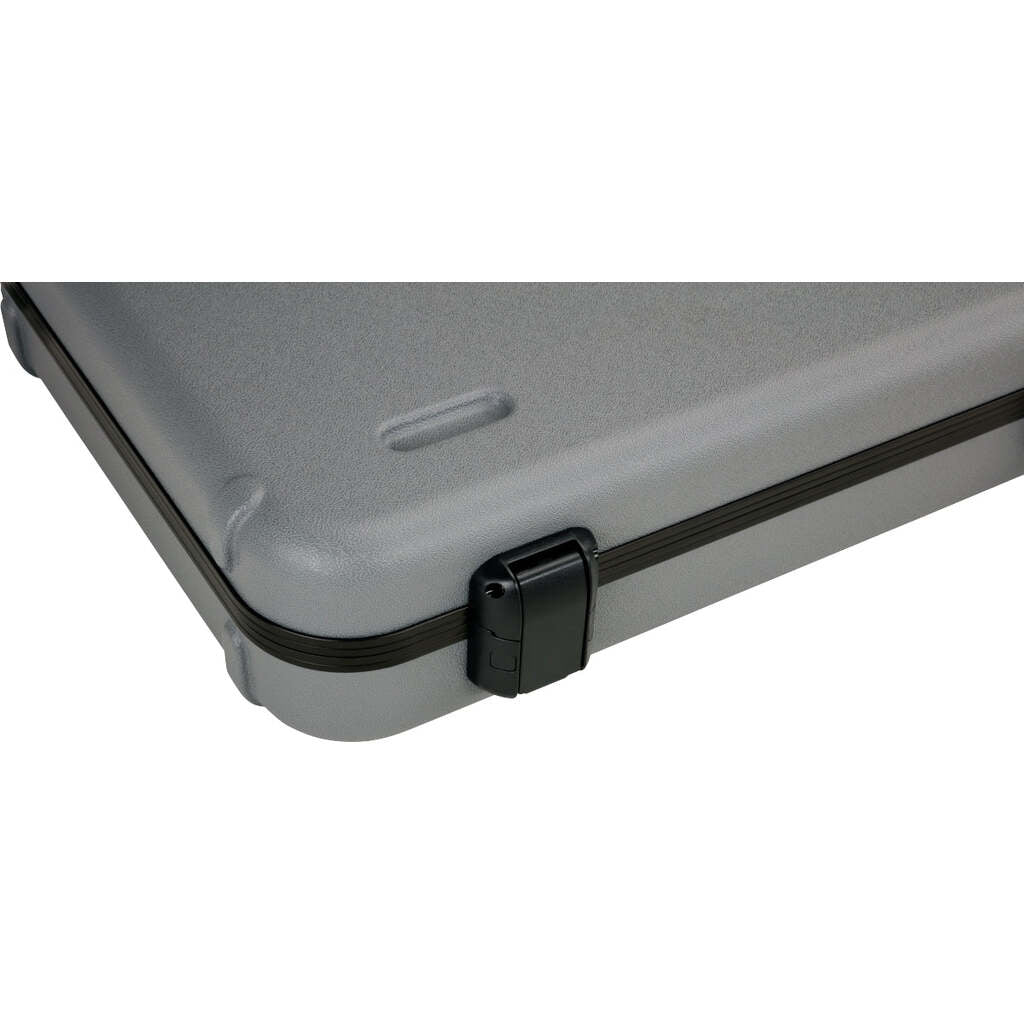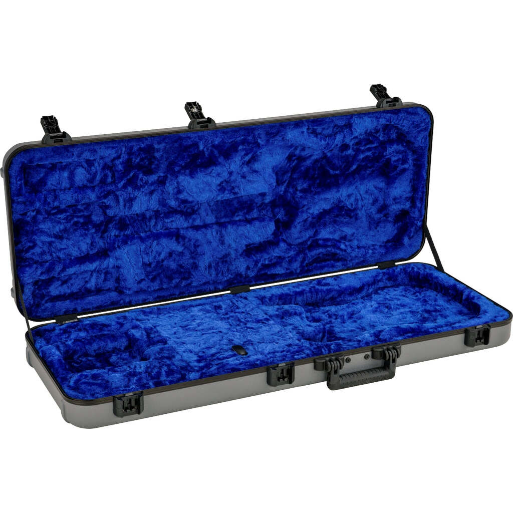 Sleek and stylish, the Inca Silver Deluxe Molded Case with Lake Placid Blue interior to transport and store you Stratocaster or Telecaster guitar designed specifically for your instrument. Combining advanced materials with a new nested stacking design and TSA-accepted locking center latch, this case will help your guitar arrive at its destination unharmed. From the rock-solid military-grade outer shell to the comfortable handle and high-grade plush interior lining, every element of this case has been engineered to create the ultimate in instrument protection. The large interior center pocket is the perfect place to stash accessories like picks, cable and straps, while helping to stabilize the neck during transport. Thanks to the rubberized feet on the hinged edge, you can enjoy additional stability—no more worrying about your case tipping over when you set it down.