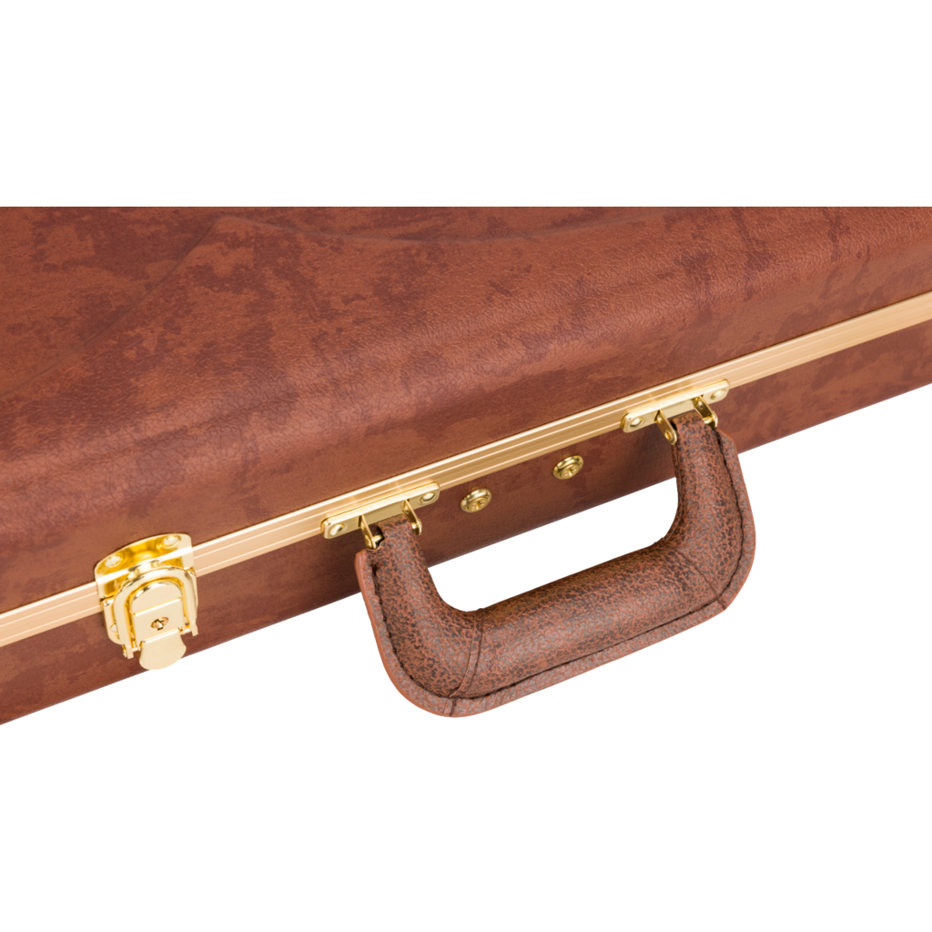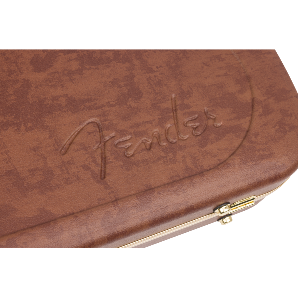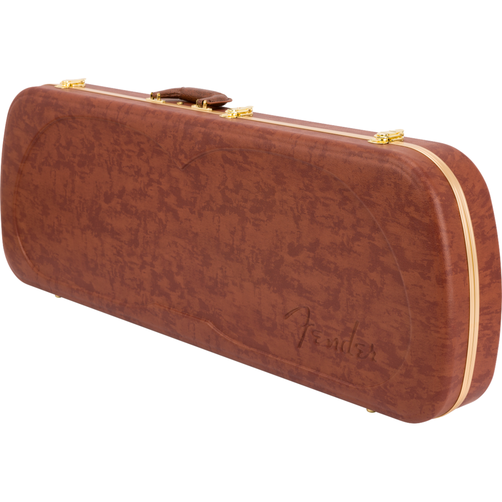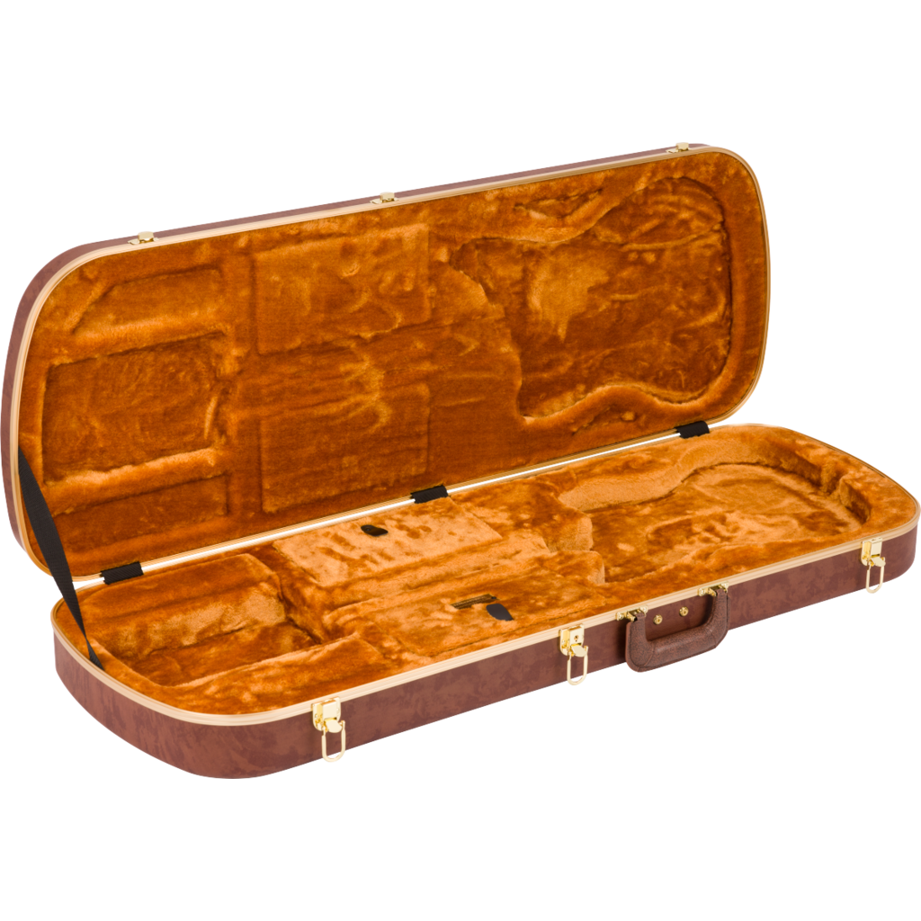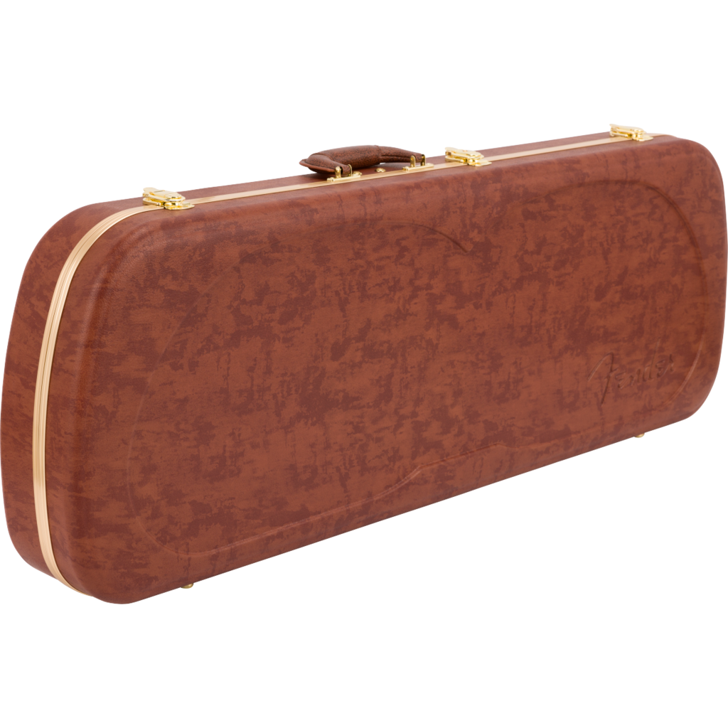 Travel back in time with this modern interpretation of Fender’s iconic eyeglass case. Modeled after the case that came with Jazzmaster® and Jaguar® guitars in the mid-1960’s, this case features modern appointments – constructed with a tough ABS outer shell and covered in a stunning textured faux cowhide print with gold hardware for vintage appeal. A soft crushed acrylic plush interior lining ensures your guitar remains scratch and damage-free while a double-door compartment provides ample space for accessories.