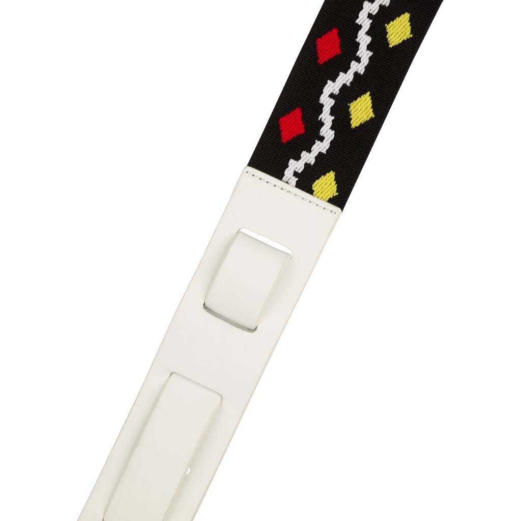 A faithful recreation of the strap he famously used throughout the legendary Let It Be recording sessions, this strap features smooth white leather, a silver buckle, and a woven multi-color design.