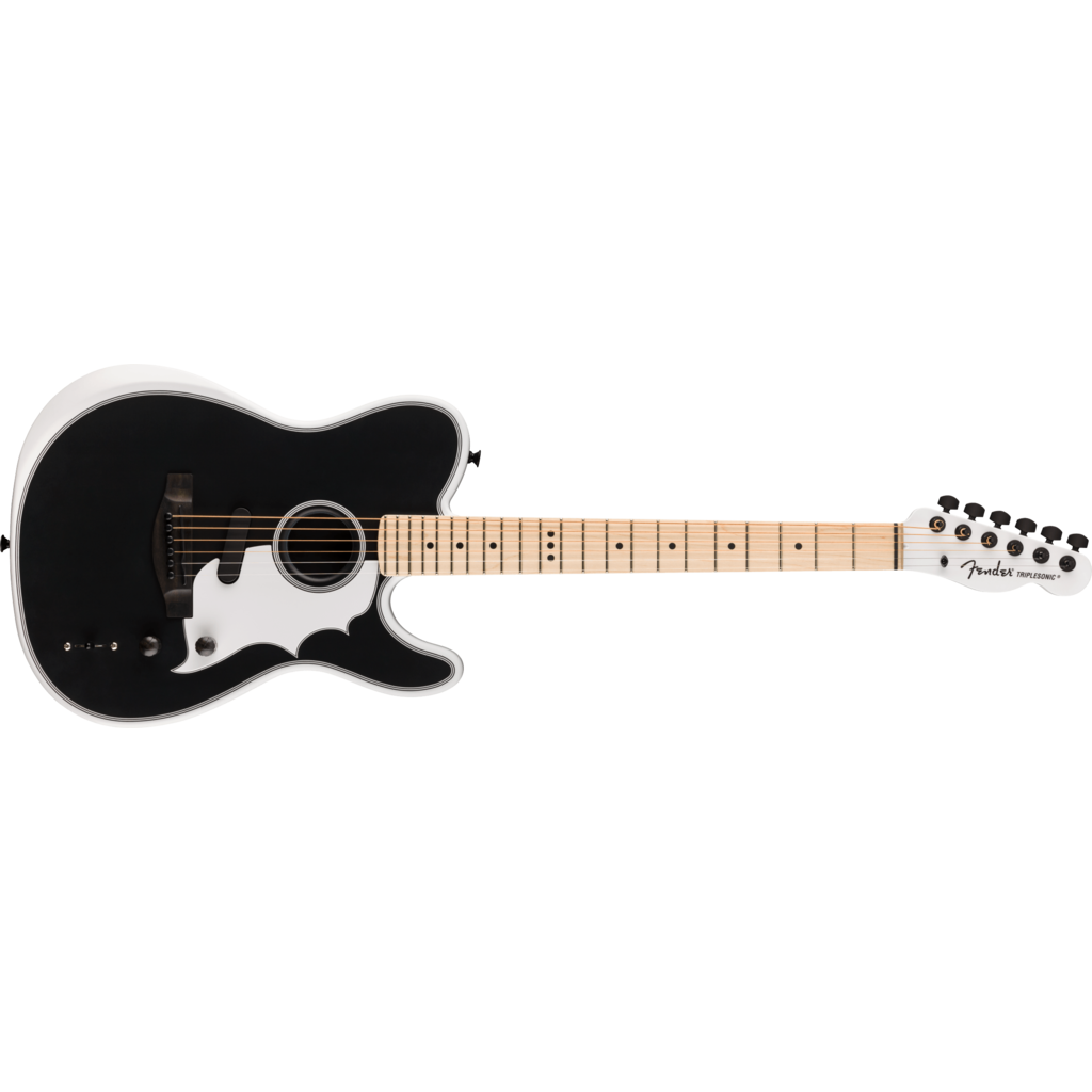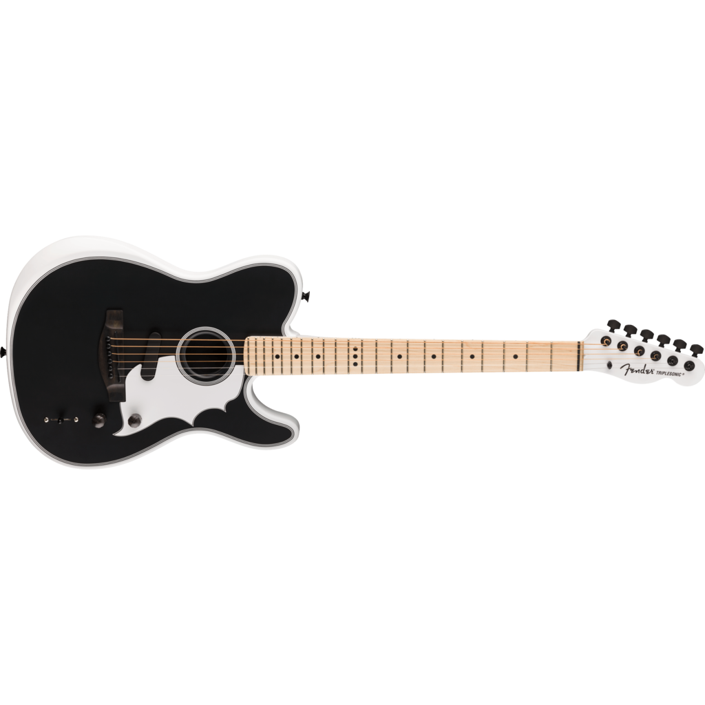 Fender - Jack White Triplesonic™ Acoustasonic® Telecaster® with Case - Maple Fingerboard - White Pickguard - Satin Arctic White with Black Top - 097-2813-117