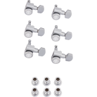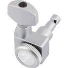 Set of six locking tuners designed to fit most modern-style Fender electric guitars with dual-pin mounting configuration. Tall post tuners are used for the wound strings and shorter post tuners are used for the plain strings. Staggered tuners increase the break angle over the nut and improve tuning stability.