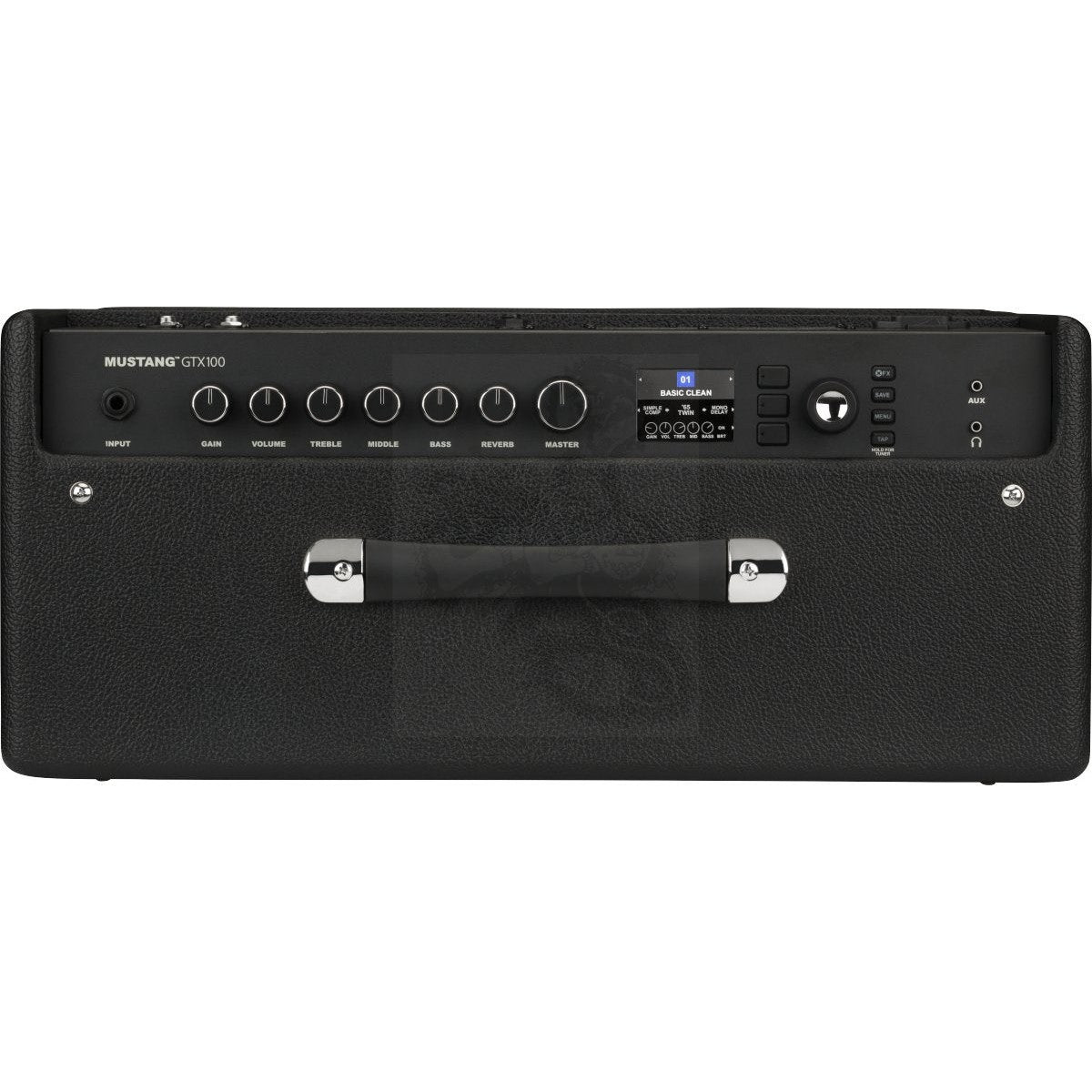 Mustang GTX 100 offers incredible bang for the buck. The all-new cabinet design is more gig-ready and durable; a new 12-inch Celestion speaker produces strong, powerful response; and the improved amp, speaker and cabinet models ensure that Mustang GTX sounds better than anything else in its class. Stereo XLR line outputs and stereo effects loop let you interface with PA, recording and outboard gear. GTX100 also features a seven-button footswitch with individual bank up and down functions and easy effects selection, making GTX a true live performance amp. It also unlocks the amp’s included 60-second looper.