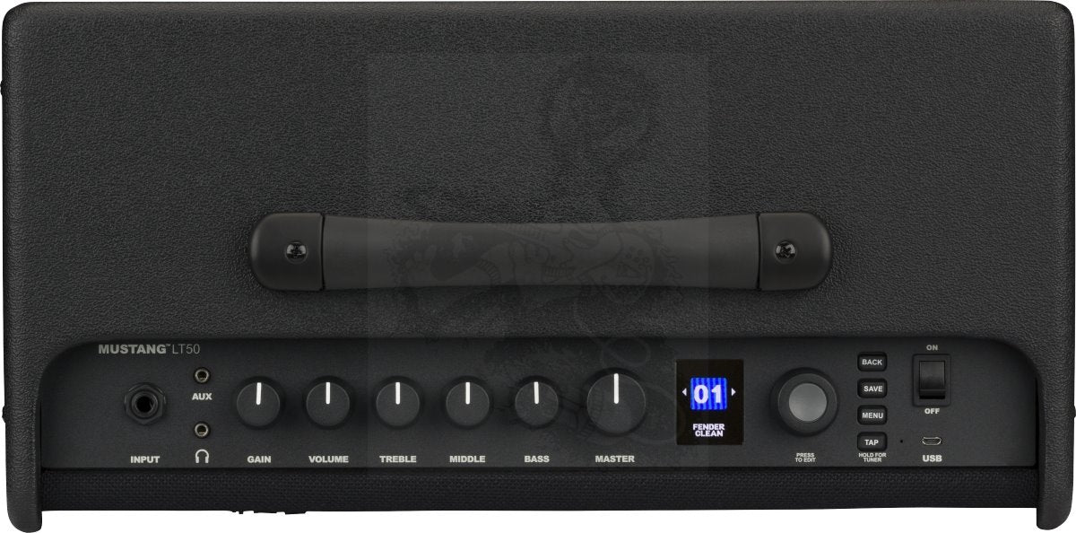Mustang LT50 incorporates what we’ve learned over decades of producing the world’s best-sounding guitar amps. It’s ideal for practice or performance, with 50 watts of power, a high quality 12-inch speaker, a super-simple user interface, full-color display, and a collection of presets covering a wide range of music—a “greatest hits” of electric guitar tones. The versatile signal chain with high-quality onboard amp and effects models produces amazing tones, making it the most inspiring 50-watt amp in its class. And with a free Fender TONE 3.0 download, use your desktop Mac or PC to edit, store and manage your presets with ease. You’ll also have access to a wealth of exciting presets from the Fender TONE community. Mustang LT50 is a fun, flexible and easy-to-use modeling amp for any guitarist. It's the only 50-watt amp in its class with such a rich feature set.