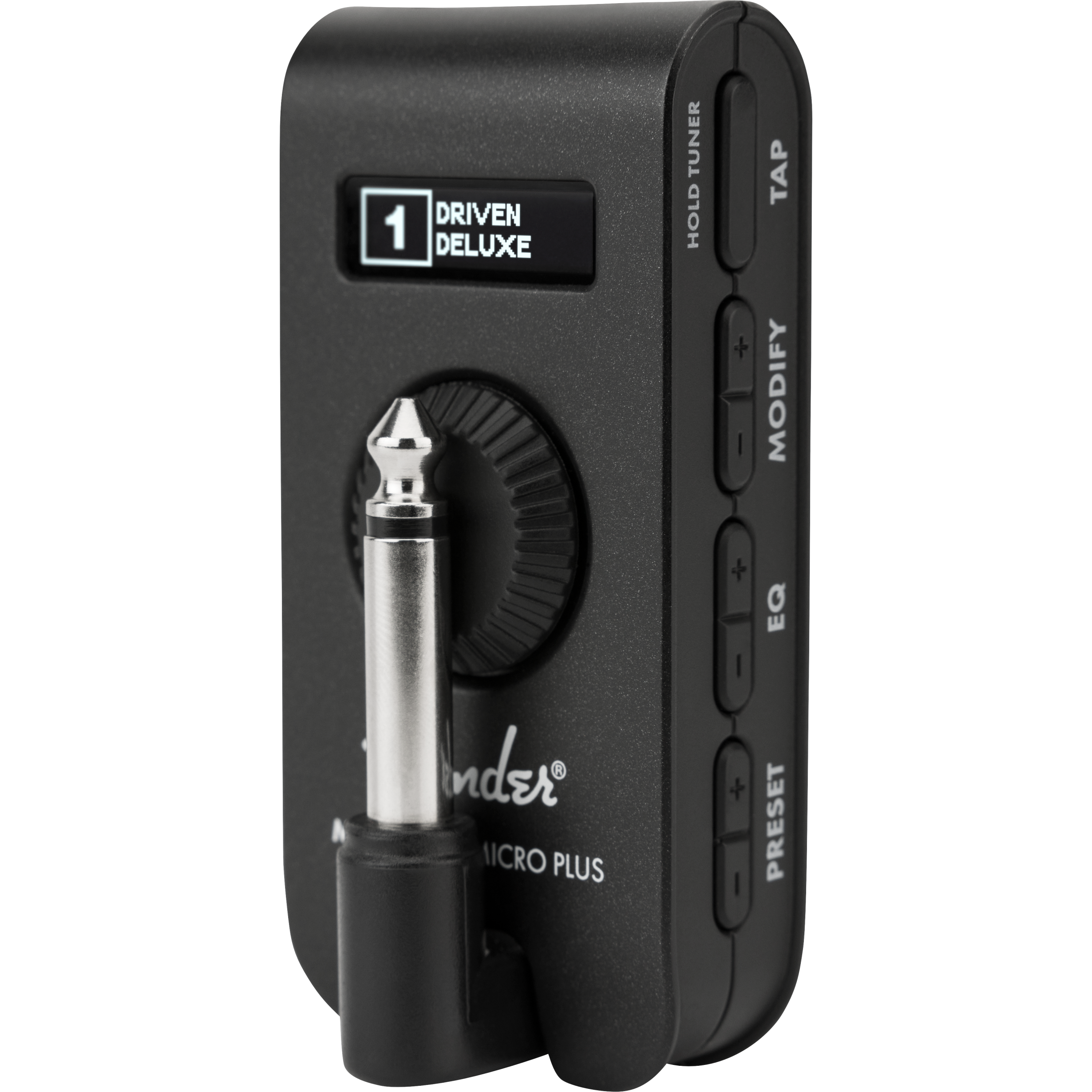 Mustang Micro Plus takes everything players love about Mustang Micro to the next level. With 25 amps and 25 effects onboard, Mustang Micro Plus is the ultimate personal guitar amplifier. Micro Plus features 100 editable preset slots with Fender Tone App support, an integrated tuner, and display.