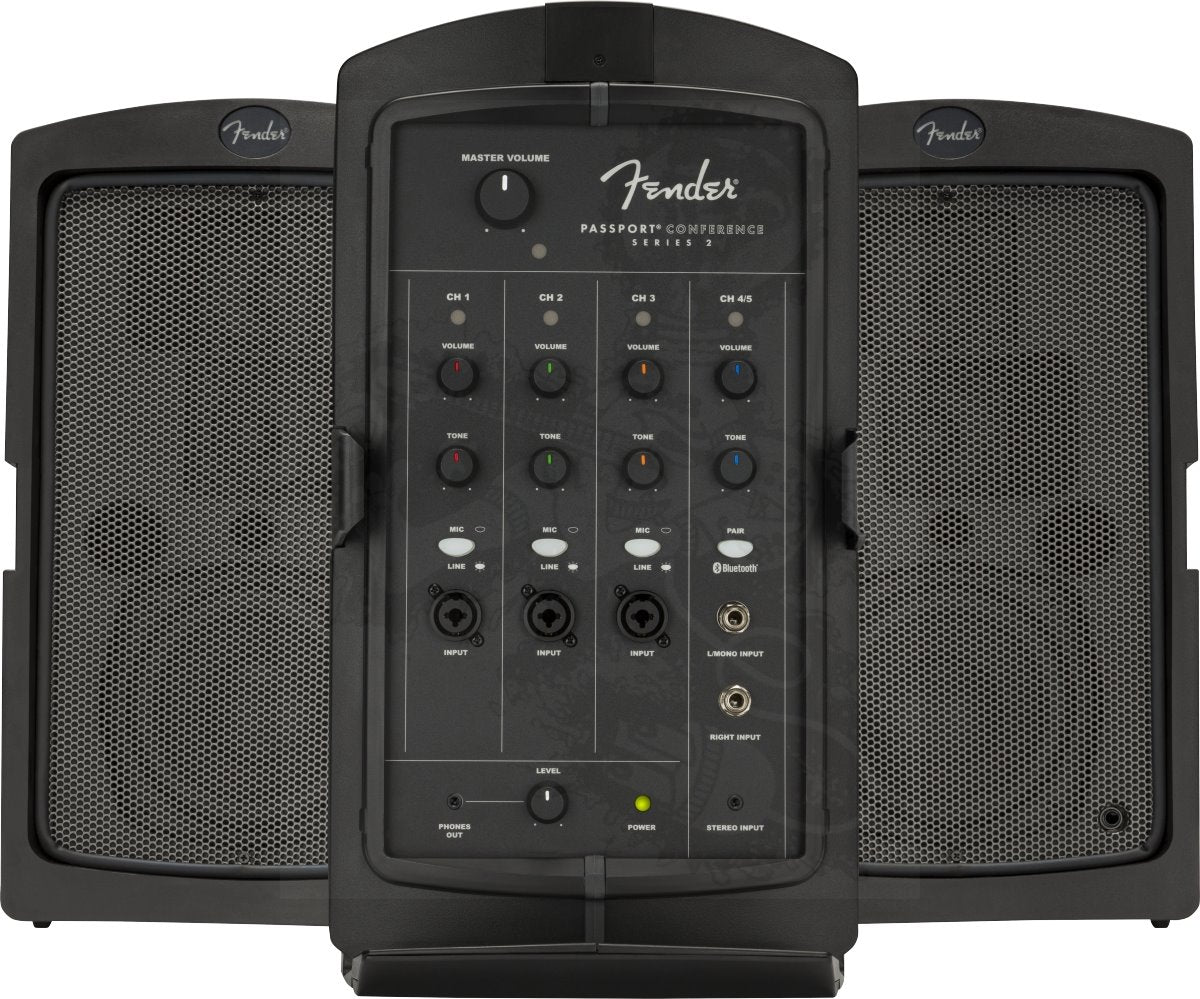 With easy-to-use features and great go-anywhere portability, the Passport® Conference Series 2 audio system is ideal for small to medium-size audiences. With Bluetooth® audio streaming, its full-range speakers, versatile features, friendly front-panel controls and 175 watts of power provide clear and reliable Fender sound ideal for a wide range of uses—educational, sporting and worship events; meetings, seminars and presentations; and musical performances at parties, small clubs, coffeehouses and much more.