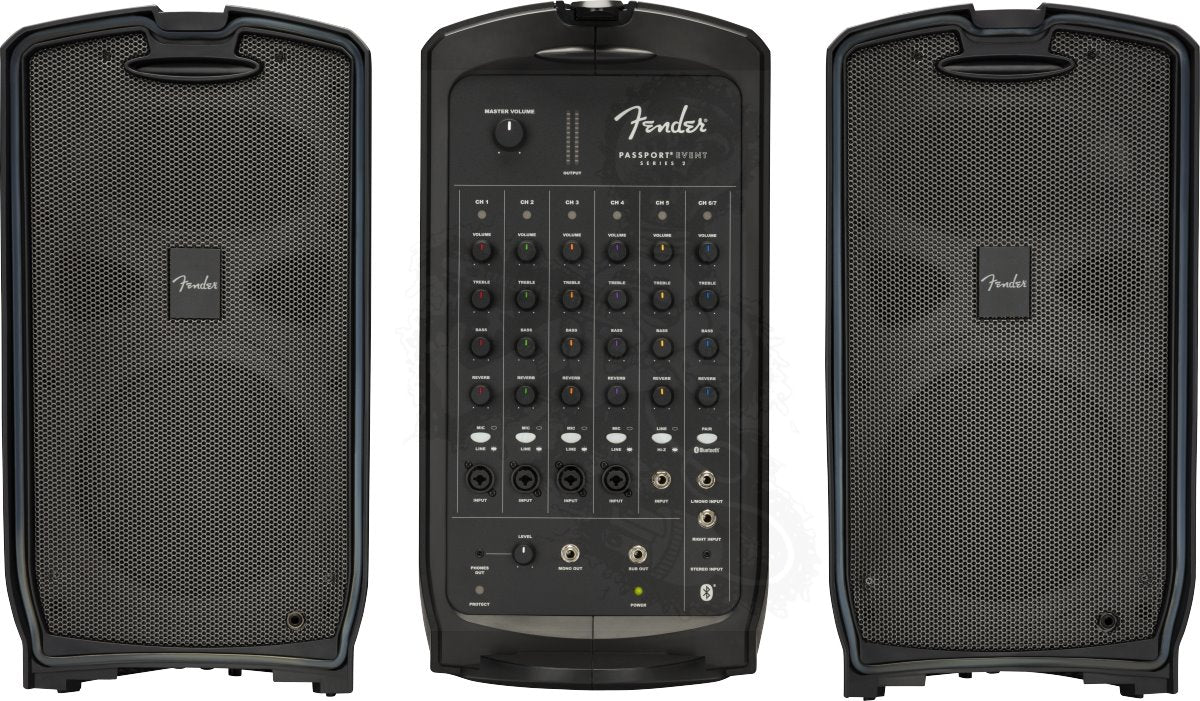 With versatile controls, great connectivity and go-anywhere convenience, the Passport® Event Series 2 portable audio system is perfect for amplifying voices, instruments and background music anywhere, anytime. Its full-range speakers, versatile features, friendly front-panel controls and 375 watts of power provide strong, clear and reliable Fender sound ideal for education, sporting and worship events; meetings, seminars and presentations; and gigs at parties, small clubs and coffeehouses. Passport Event Series 2 features combination XLR/¼” jacks for increased connectivity.