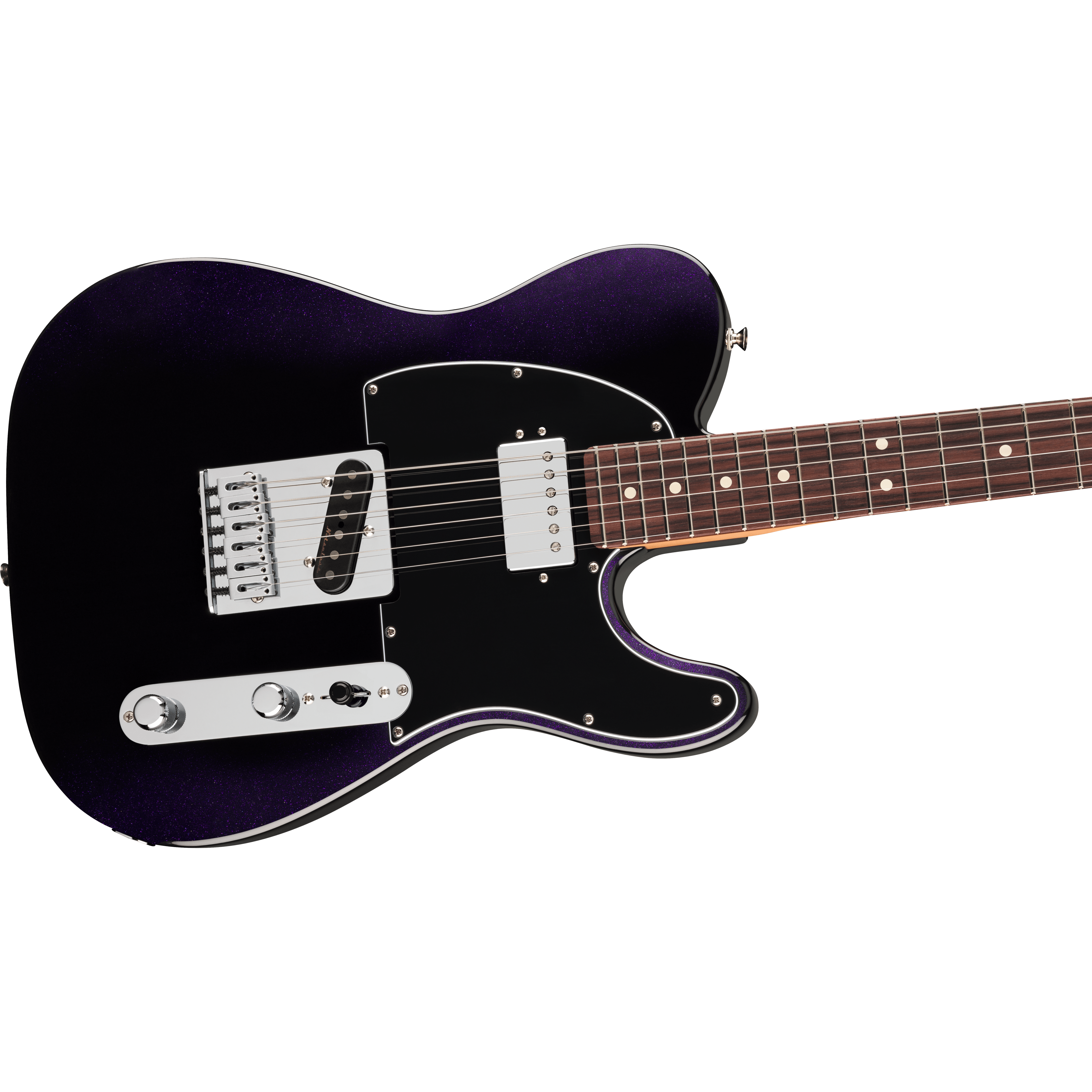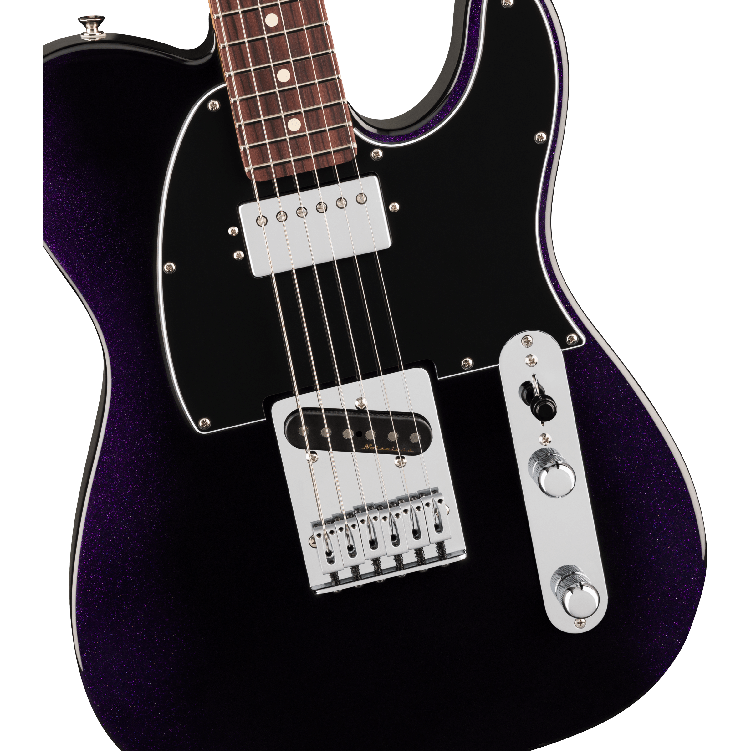 The Player II Modified Telecaster® SH is a classic guitar with the modern player in mind. Everything about the neck is designed for fast and fluid playability, from the Modern “C”-profile with silky satin urethane finish on the back to the comfy 9.5”-radius slab rosewood or 1-piece maple fingerboard with smooth rolled edges and 22 medium jumbo frets. The alder body provides classic Fender punch and is available in a variety of exciting new finishes. The Player II Modified humbucker is articulate with plenty of output and the noiseless™ pickup delivers classic Tele® twang and bite while eliminating unwanted noise and feedback. For additional tonal flexibility the push/pull tone switch splits the neck humbucker and enables classic Tele® neck single-coil tones. The 6-saddle bridge, short post locking tuners, TUSQ® nut and modern string tree all combine to keep tuning incredibly stable for even the most demanding steel-emulating bends or roaring rock leads.