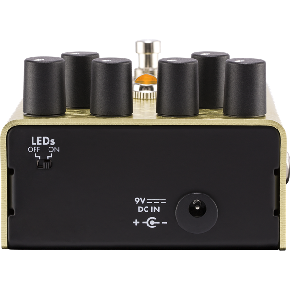 Designed by our in-house team of experts, the Pugilist Distortion is an all-original circuit. We consulted with a plethora of players while designing this pedal, and the resulting stompbox is packed with stage-ready features. The chassis is crafted from lightweight, durable anodized aluminum, and the Amp Jewel LED gives your pedalboard the classic Fender look. The LED-backlit knobs show your control settings on a dark stage at a glance. We even made swapping batteries quicker and easier with our exclusive “patent applied for”, magnetically latched 9V battery door.