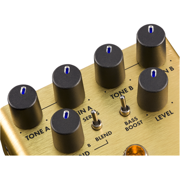 Fiery sounding and flexible, the Pugilist Distortion is ready to add some heavyweight gain to your rig. This original design features dual gain engines—with independent tone controls for each—letting you select multiple variations of distortion, ensuring this pedal will play well with any rig. Series/Blend switch lets you stack channels for thick, cascading distortion, while the Bass Boost switch fattens up your tone. The Blend control mixes the two channels to get the best of both worlds, crafting a sound just for you.