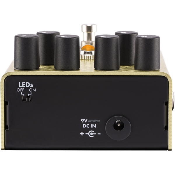 Designed by our in-house team of experts, the Pugilist Distortion is an all-original circuit. We consulted with a plethora of players while designing this pedal, and the resulting stompbox is packed with stage-ready features. The chassis is crafted from lightweight, durable anodized aluminum, and the Amp Jewel LED gives your pedalboard the classic Fender look. The LED-backlit knobs show your control settings on a dark stage at a glance. We even made swapping batteries quicker and easier with our exclusive “patent applied for”, magnetically latched 9V battery door.