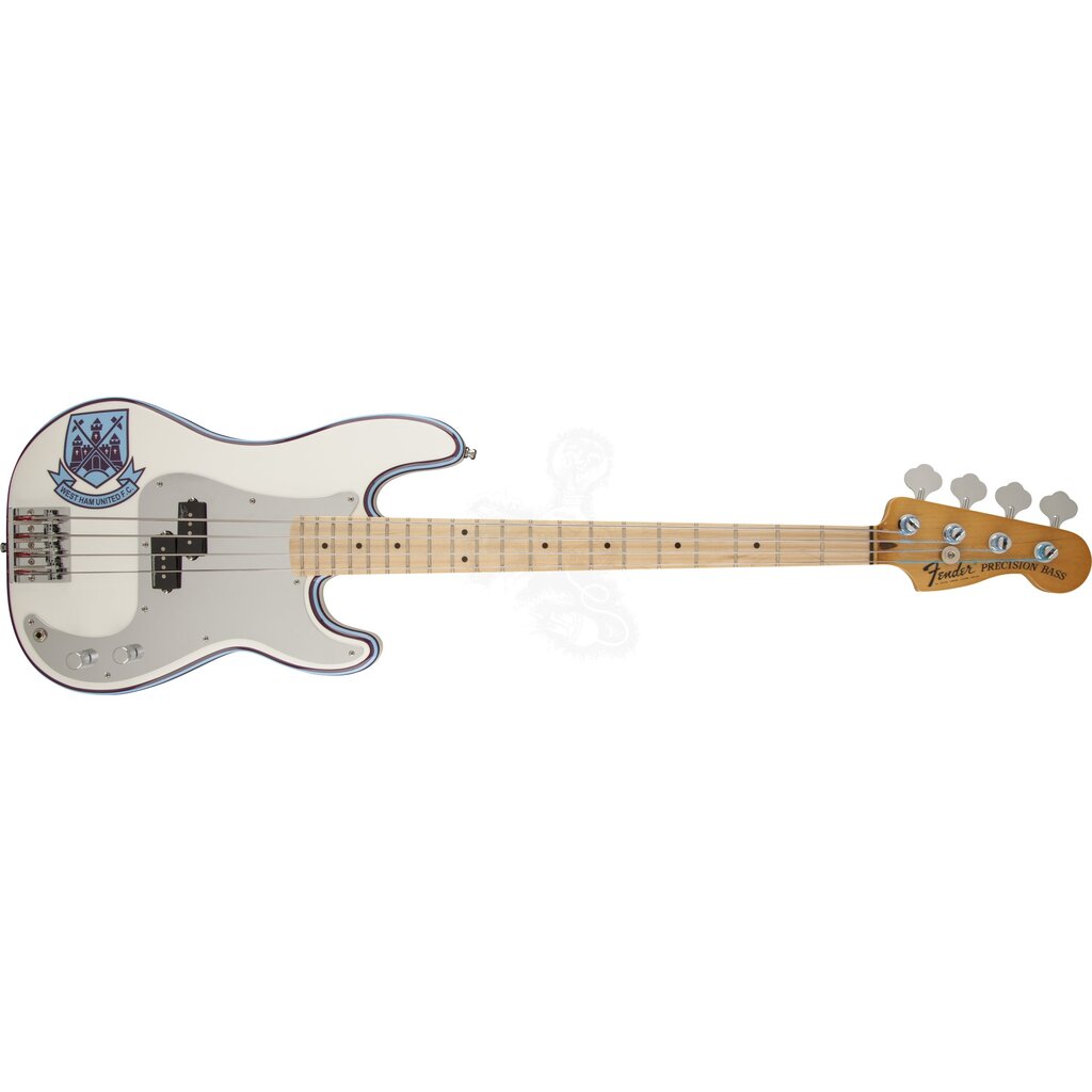 Steve Harris's galloping fleet-fingered basslines have turbocharged U.K. metal titans Iron Maiden for decades and have made him the most influential metal bassist alive. Harris has stayed true to his battle-hardened Precision Bass over the years, and his signature Steve Harris Precision Bass now comes in his famously regal gloss White finish with special pinstriping, mirrored pickguard and West Ham United F.C. crest. Other ironclad features include a single powerful Seymour Duncan® Steve Harris signature model pickup, Fender HiMass™ bridge, Fender round-wound strings and Harris's signature on the back of the headstock. A set of Rotosound® Steve Harris Signature flat-wound strings are included.