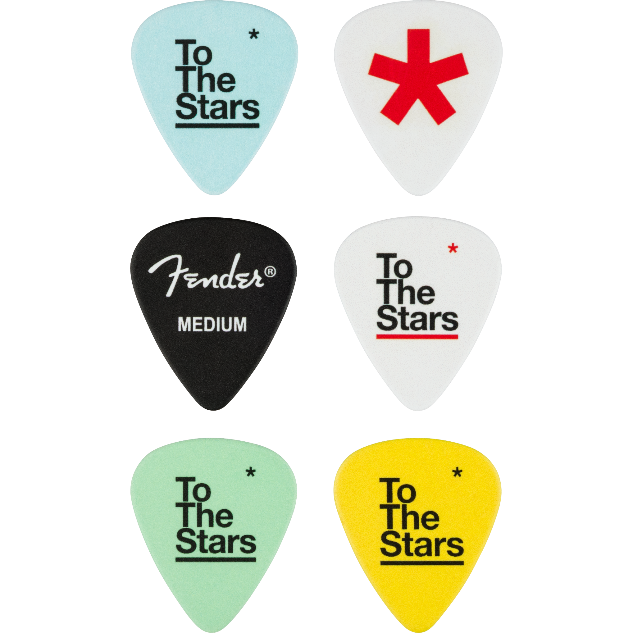 Whether you're a fan of Tom DeLonge's playing in Blink-182 or Angels and Airwaves, his impact on music and culture is out-of-this-world. Inspired by the distinct colorways of his iconic signature Strat® models, the Tom DeLonge To The Stars collection features designs in collaboration with the unique aesthetic of both brands. Featuring bold graphics and logos, the Tom DeLonge To The Stars 351 Celluloid Picks are the perfect plectrum to take your playing to new cosmic heights.
