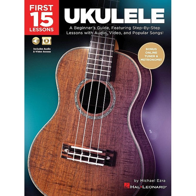 The First 15 Lessons series provides a step-by-step lesson plan for the absolute beginner, complete with audio tracks, video lessons, and real songs! Designed for self-teaching or for use with an instructor, you'll build a solid foundation as you work through each lesson, learning the basics of the instrument and music reading while practicing the many exercises, concepts and song excerpts within. Must-know instruction so you can start playing right away, with a free online tuner and metronome! This uke book features video and print lessons on: ukulele fundamentals; music reading; tuning; strumming; arpeggions; open and movable chords; fingerpicking; scales; syncopation; shuffle feel; and more. Strum and pluck along with popular songs including: Band on the Run · Evil Ways · Free Fallin' · Happy Together · Let It Be · Ode to Joy · The Sound of Silence · Summertime · You Ain't Seen Nothin' Yet · and more.