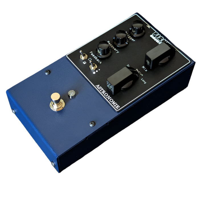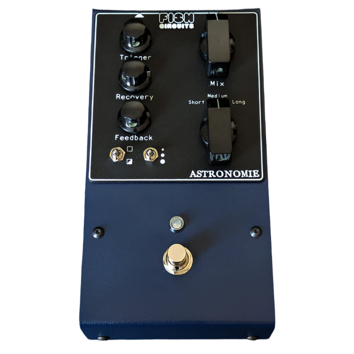 Short, Medium, Long. Short decay, Medium decay, and Long decay. This controls the length of the reverb effect before it naturally fades out. It is affected by how much Feedback is present and by the right toggle’s tone setting, but each position on this rotary switch has a different character such that everything else will probably need to be tweaked when going from one setting to another.