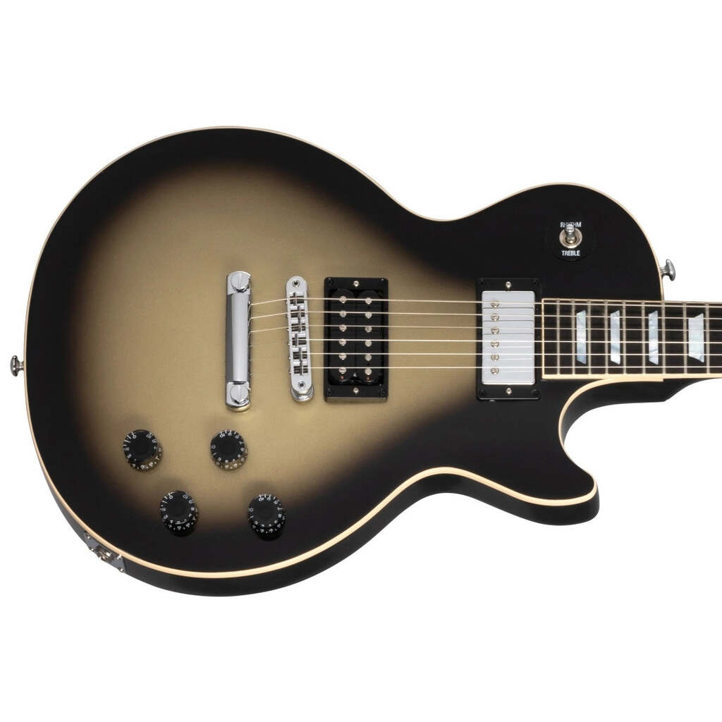 Gibson USA is proud to introduce a new Artist model in collaboration with Adam Jones, one of rocks most talented and sonically innovative guitarists, from the multiplatinum selling and multiple Grammy Award® winning band, Tool. His new Les Paul™ Standard is finished in Antique Silverburst and has an ebony fretboard with mother of pearl trapezoid inlays and Grover® Rotomatic® tuners with contemporary style buttons. It comes equipped with a chrome-covered BurstBucker™ 1 in the neck position and an uncovered DC High-Gain Humbucker™ in the bridge position. The controls are hand-wired with Orange Drop® capacitors. It also features Adams signature on the truss rod cover and custom Adam Jones artwork on the back of the headstock and comes with a modern hardshell case.