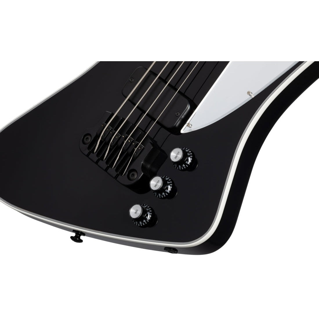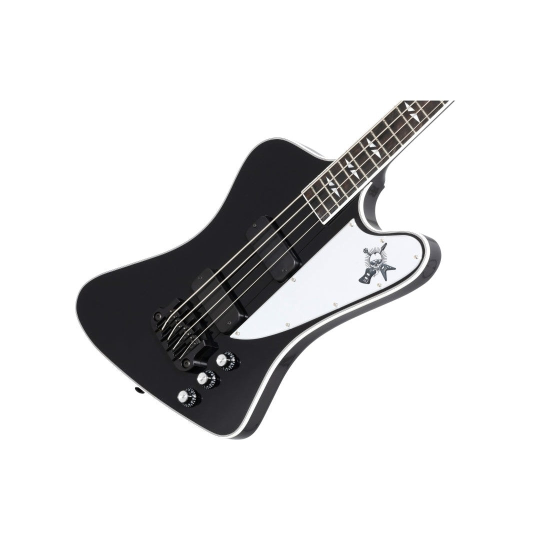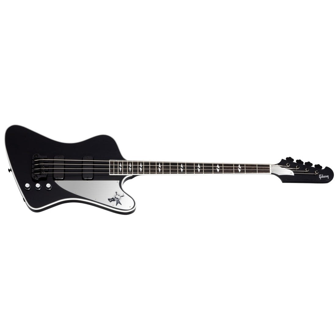 Gene Simmons is a legendary rock icon and the bassist from KISS, and his new Gibson Gene Simmons G2 Thunderbird Bass reflects his tastes. Designed to meet the musical needs of modern bassists, it features the classic Reverse Thunderbird body and headstock shape. The G2 Thunderbird Bass is voiced with a pair of powerful T-Bird pickups, each with individual Volume controls and paired with a master Tone control. The bound ebony fretboard features pearloid reverse split diamond inlays. A Graph Tech nut and Hipshot Mini-Clover tuners keep the tuning rock-solid, while the other end of the strings anchor to a Hipshot Bass Bridge. The back of the headstock features a G2 logo. The Ebony nitrocellulose lacquer finish is paired with Black Chrome hardware and a Mirror Plex truss rod cover and Mirror Plex pickguard with a laser engraved custom Gene Simmons logo. A modern hardshell case is included.