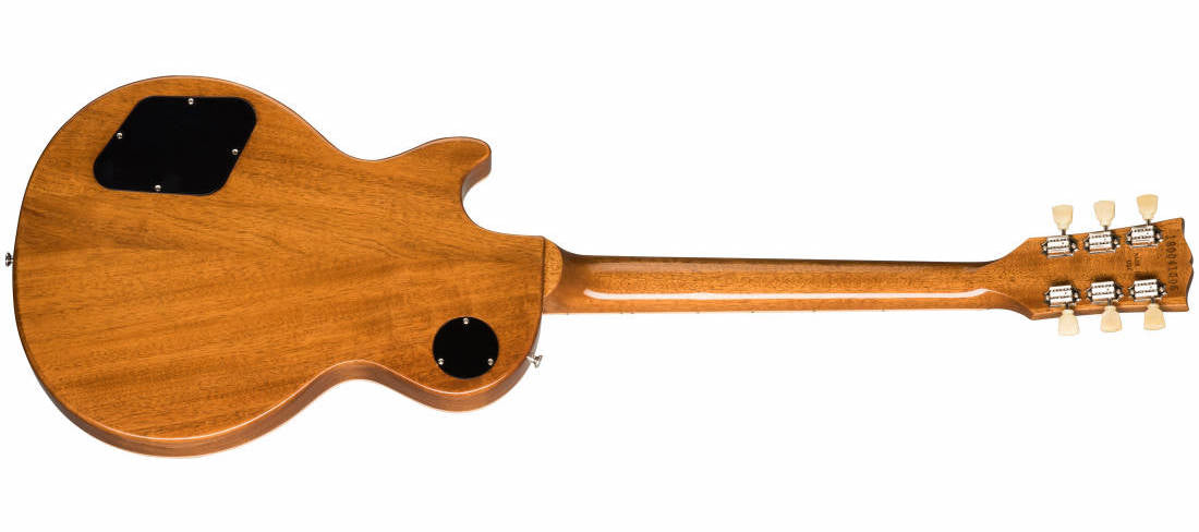 The new Les Paul Standard returns to the classic design that made it relevant, played and loved - shaping sound across generations and genres of music. It pays tribute to Gibson's Golden Era of innovation and brings authenticity back to life. The Les Paul Standard 50's has a solid mahogany body with a maple top, a rounded 50's-style mahogany neck with a rosewood fingerboard and trapezoid inlays. It's equipped with an ABR-1, the classic-style Tune-O-Matic bridge, aluminum stop bar tailpiece, vintage deluxe tuners with keystone buttons, and amber top hat knobs. The calibrated Burstbucker 1 (neck) and Burstbucker 2 (bridge) pickups are loaded with AlNiCo II magnets, audio taper potentiometers and orange drop capacitors.