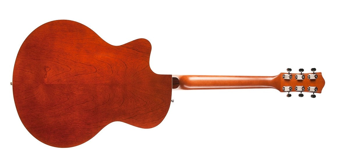 Made from Canadian Wild Cherry, the body of the 5th Avenue features a molded arched top and back, as well as an adjustable bridge, classic F-holes, contoured high-gloss headstock, floating pickguard, and cream binding. Also, the rustic beauty of its Custom Polished Finish creates a gorgeous satin sheen reminiscent of the 19th century.